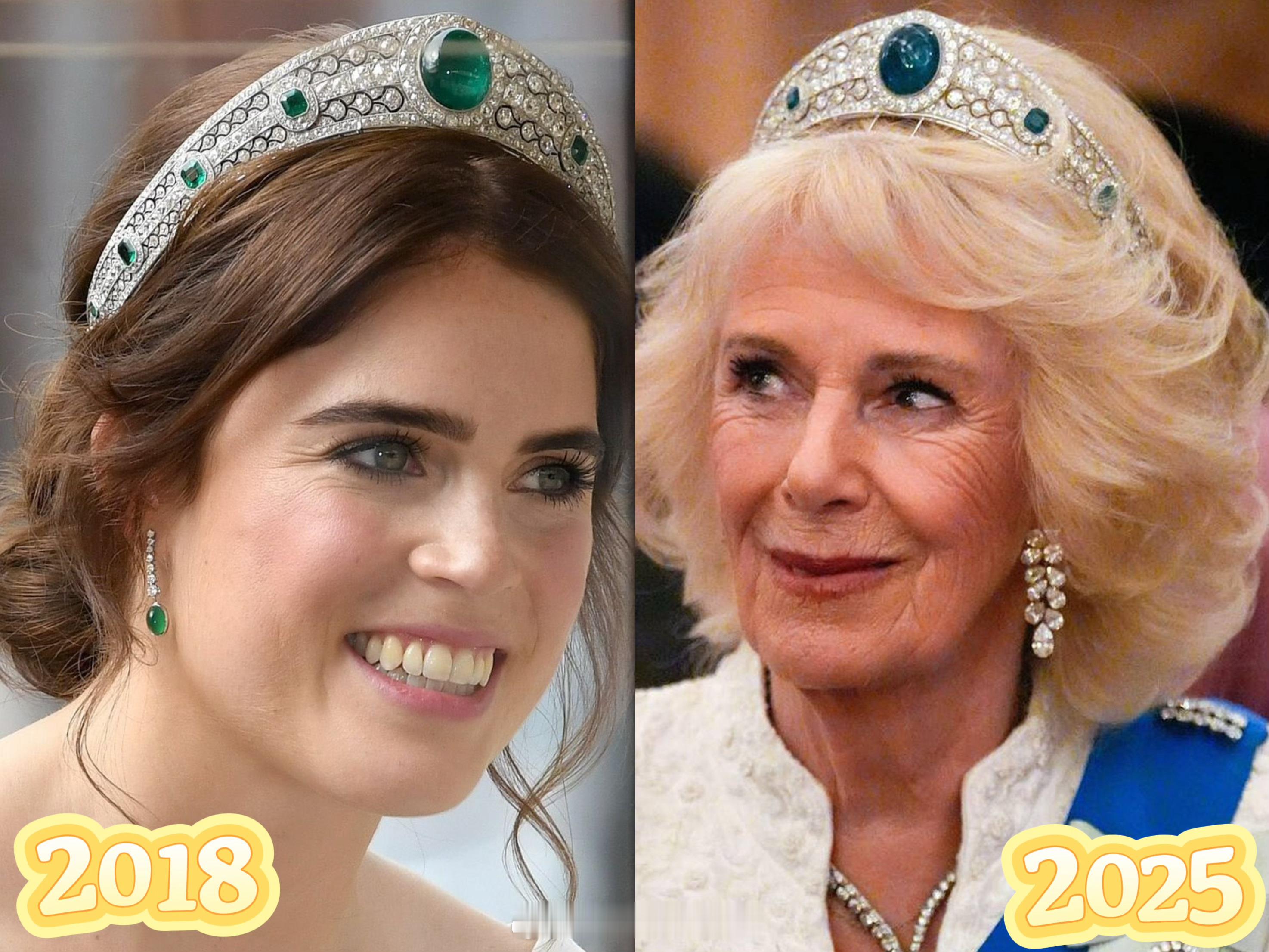 2025年11月18日,卡米拉王后在温莎城堡出席一年一度外交招待会,她佩戴的是格雷维尔科科什尼克祖母绿王冠👑这款来自伊丽莎白王太后于1942年收到格雷维尔夫人遗赠的珠宝收藏,上次出现的时间是2018年10月12日,约克尤金妮公主的婚礼。