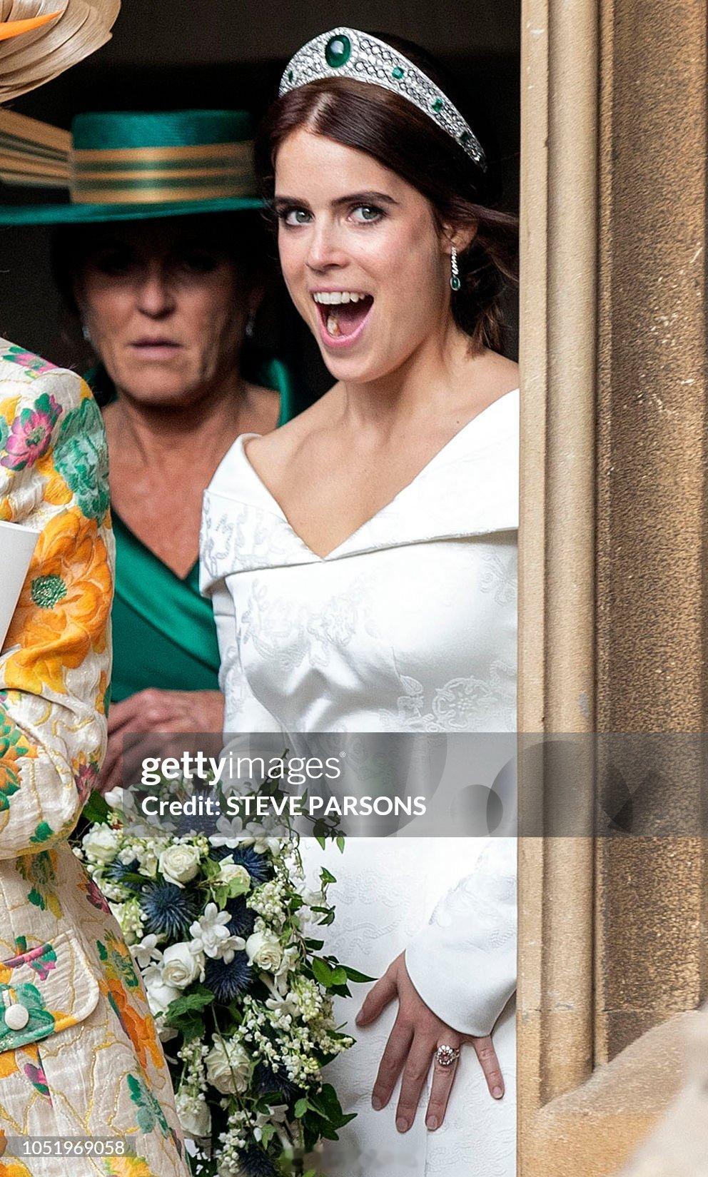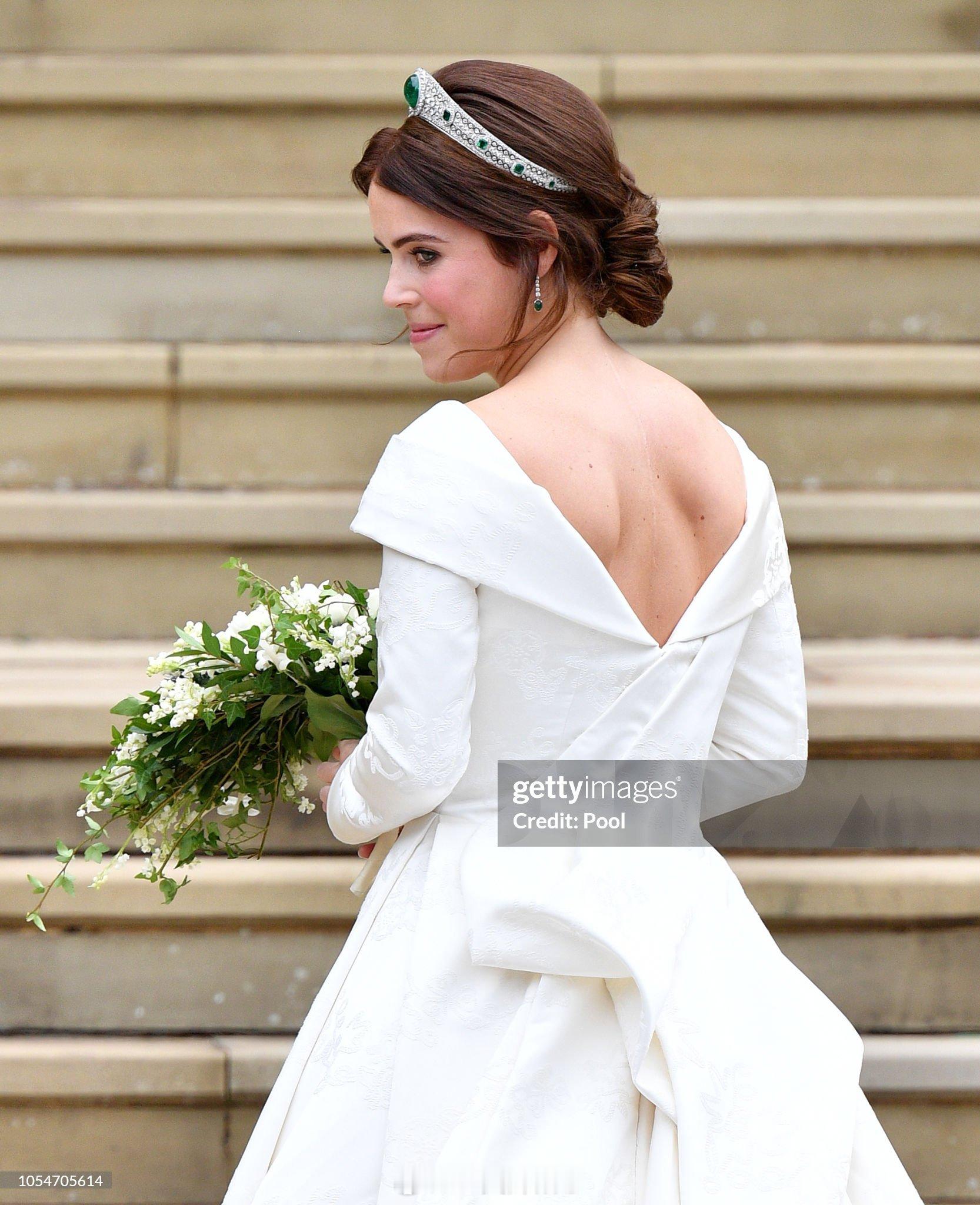 【重温】2018年10月12日,约克尤金妮公主在温莎城堡圣乔治教堂嫁给她的Jack Brooksbank💒那时候尤金妮佩戴的是她的奶奶伊丽莎白二世女王借给她的格雷维尔科科什尼克祖母绿王冠,这王冠来自她的曾祖母伊丽莎白王太后于1942年收到的格雷维尔夫人珠宝收藏。