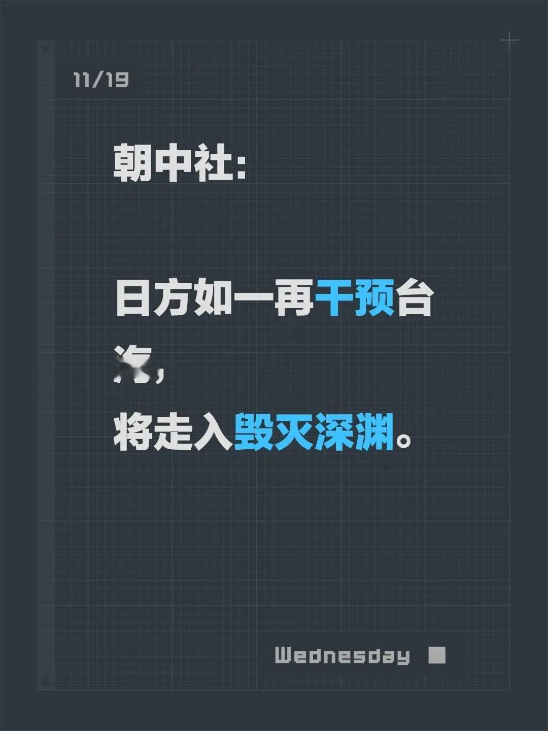 朝中社:日方如一再干预台海,将走入毁灭深渊。