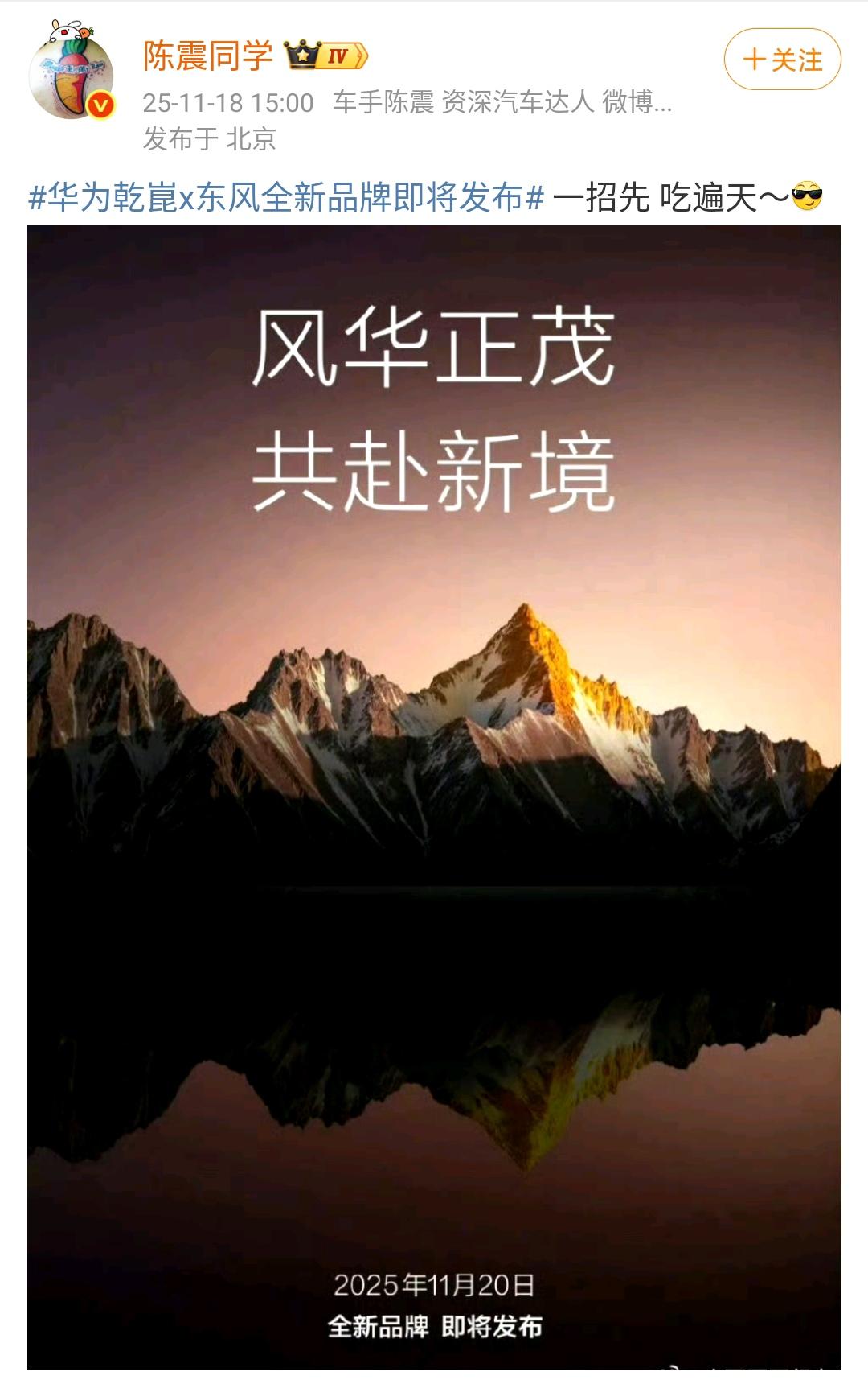 陈震:华为乾崑x东风全新品牌即将发布, 一招先 吃遍天~[酷] 华为和稍微定位高的品牌合作就是好卖,这个东西都不用验证的,好多品牌都是这种情况。 本质上还是大家认可华为的这套智能驾驶辅助,只要相关品牌把自己的车辆各项功能给搞好,把售后搞好,基本上就是不愁卖的。 各位是怎么看的?欢迎评论区留言。