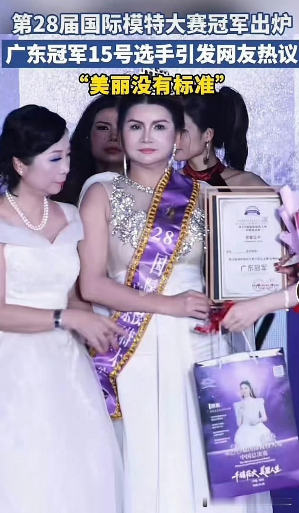 发现最近的选美界出现了一股新的审美退化风潮, 最新深圳“第28届国际模特大赛中国总决赛”颁奖现场, 15号选手手持冠军奖杯致谢的视频引发全网争议, 她的面容、身材虽然不算差, 但是真要作为模特大赛冠军显然不太够格。 主办方说15号选手只是“最佳影视潜质奖”, 而广东赛区冠军为混血选手艾玛尔, 可是网友却不买账, 因为这冠军艾玛尔全网查无此人, 恐怕是所谓的“空气冠军”。 模特总冠军
