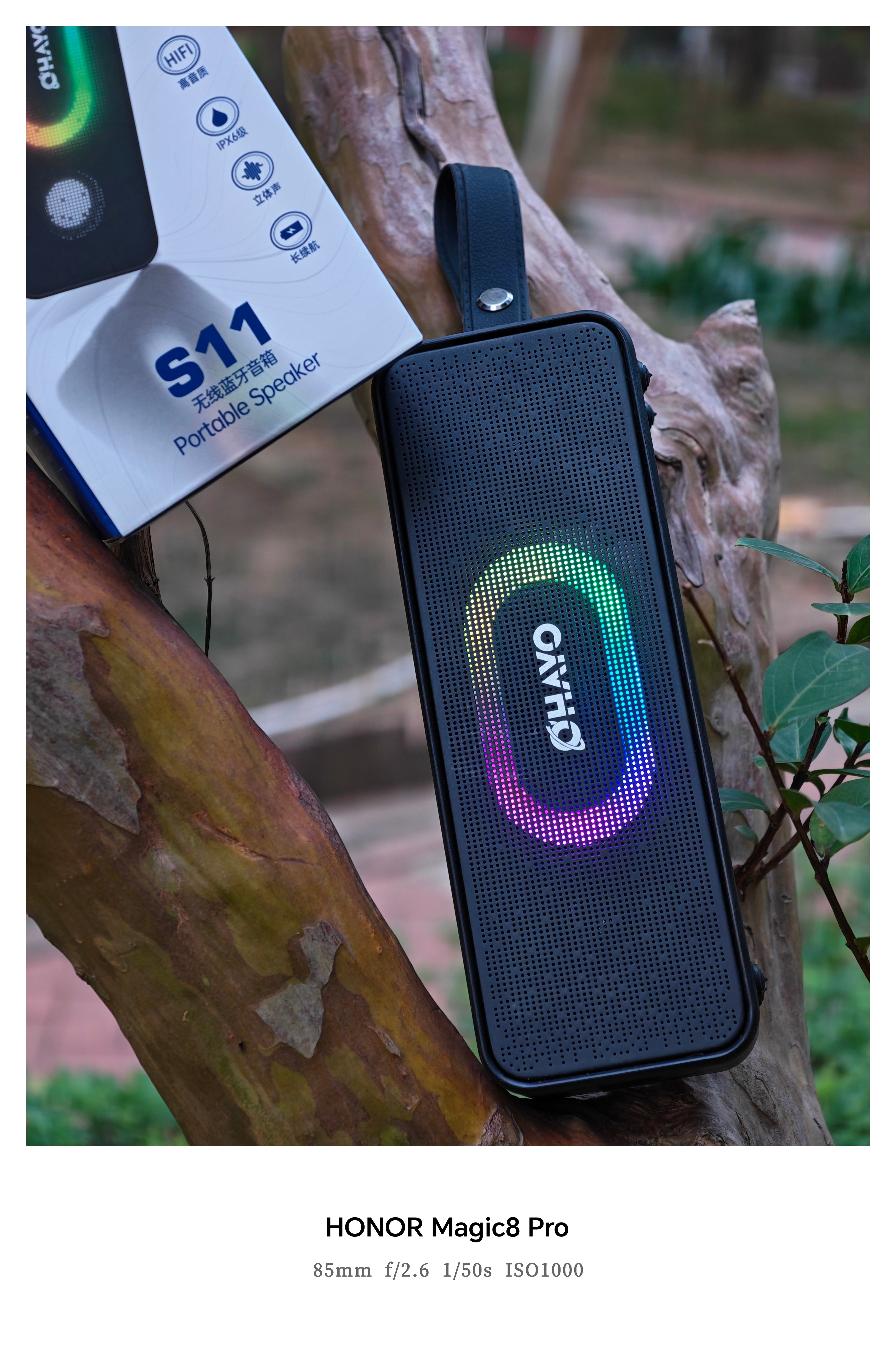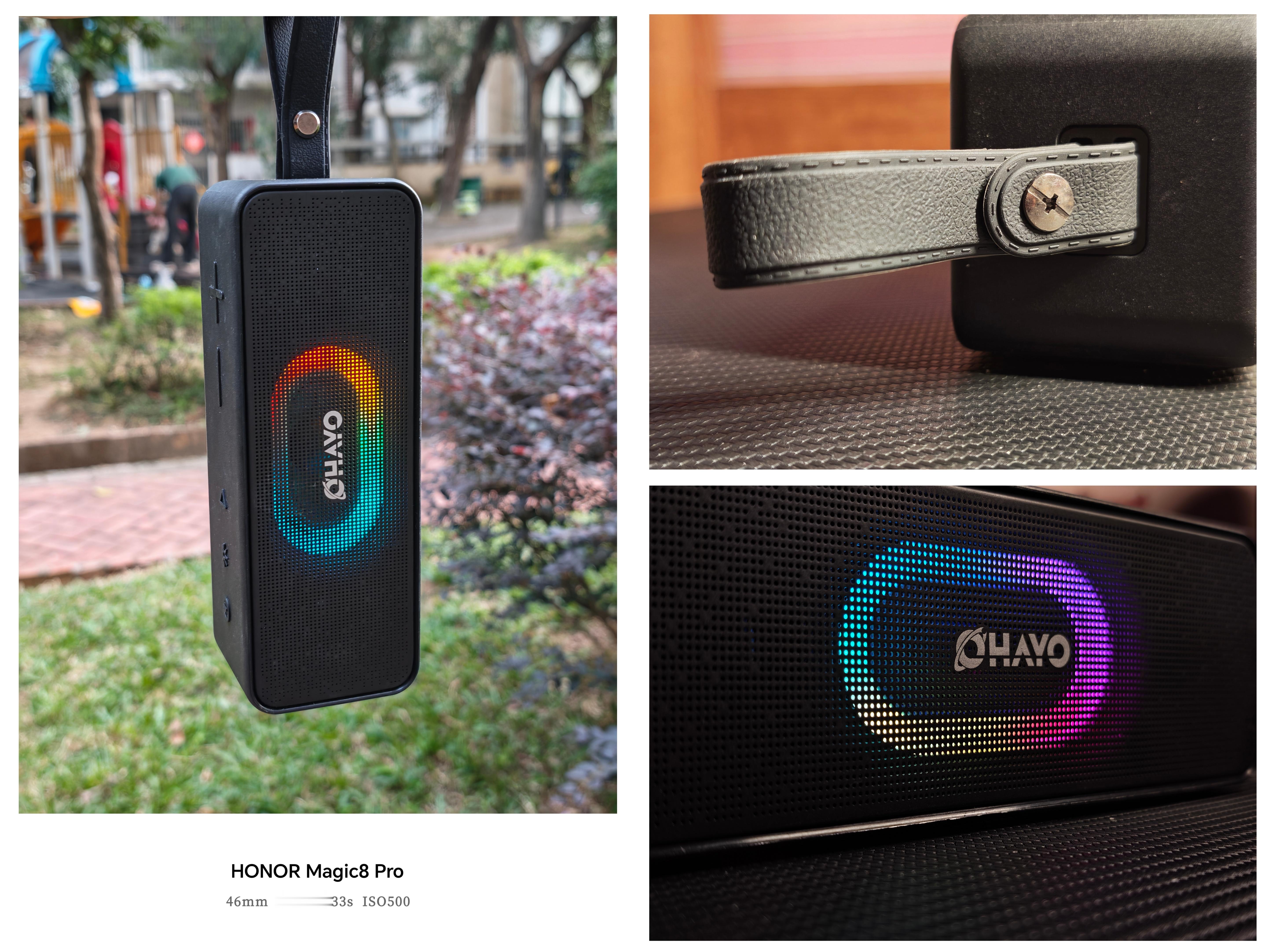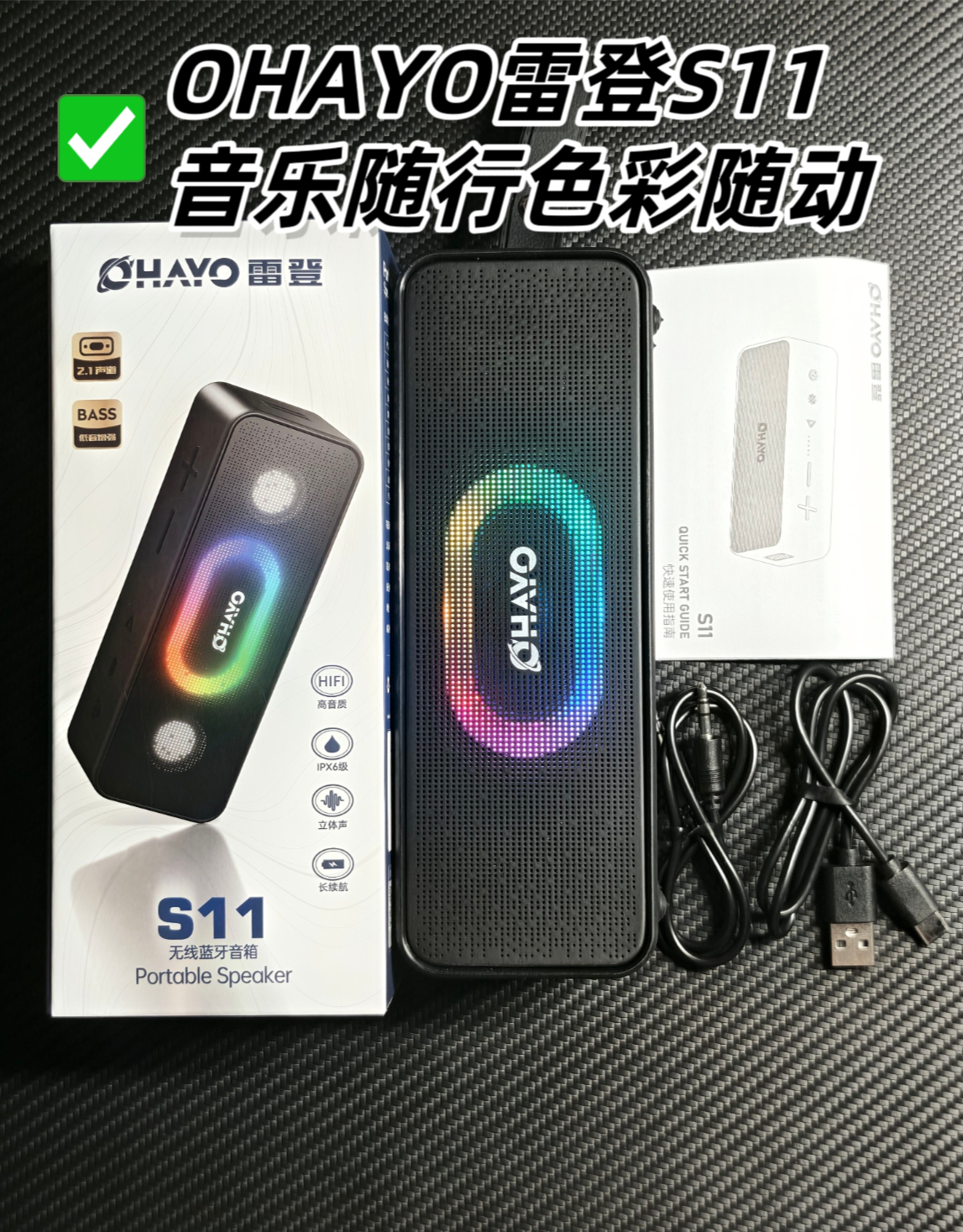 雷登S11无线蓝牙音响:音乐随行,色彩随动,光影律动的黑色美学在蓝牙音响市场,产品同质化现象日益严重,但OHAYO雷登S11却以其独特的设计理念和卓越的音质表现,成功吸引了我的注意。经过一段时间的深入体验,我深刻体会到这款音响在细节处理上的用心,尤其是其纯黑色机身与RGB灯效的搭配,营造出一种低调而高级的视觉体验。外观设计:雷登S11的外观设计堪称一大亮点。它采用了长方体的造型,线条简洁流畅,整体呈现出一种沉稳而大气的风格。拥有1680万色的RGB灯效,随着音乐的节奏,会有5种灯效会不断变化,从柔和的暖色到炫目的冷色。纯黑色的机身与多彩的灯光形成了鲜明的对比,使得音响在视觉上更具冲击力,同时也更加符合现代人的审美需求。携带便携性:在便携性方面,雷登S11它配备了手提带设计,无论是挂在墙上、放在桌上,还是提在手中、挂在车上,都能轻松携带。这样的设计使得音响的适用场景更加广泛,无论是家庭聚会、户外野餐,还是车载出行,都能成为你的音乐伴侣。而且,纯黑色的机身设计使得音响更加耐脏,即使长时间使用,也能保持干净整洁的外观。音响音质:作为一款蓝牙音响,音质才是最核心的竞争力。雷登S11在这方面同样没有让我失望,它采用了丝膜高音10W*2个,25W钕磁中低音扬声器,使得高中低音更加均衡,层次分明。四单元2.1声道的配置更是让低音表现尤为突出,无论是摇滚还是民谣,都能得到完美的呈现。同时,高音部分也清晰亮丽,没有丝毫的刺耳感。续航:除了音质之外,雷登S11在续航方面非常出色。内置了5200毫安大容量电池,它可以连续28小时音乐播放,无论在哪里听歌,都不用担心电量不足的问题。综合:雷登S11支持蓝牙5.3连接,信号稳定,传输速度快;还支持USB插U盘播放,让你在没有蓝牙设备的情况下也能享受音乐;此外,还有AUX音频输入接口,可以连接电脑、电视等设备,满足你多样化的使用需求,内置AEC回音消除硅麦,能清晰通话,支持IPX6防尘防水,即使遇到雨天都无需担心。总结:OHAYO雷登S11无线蓝牙音响以其纯黑色的机身设计、出色的音质表现、还有便携性和续航能力,在同等价位的蓝牙音箱脱颖而出,如果你也是一位热爱音乐、追求品质生活,那么这款音响绝对值得你拥有。