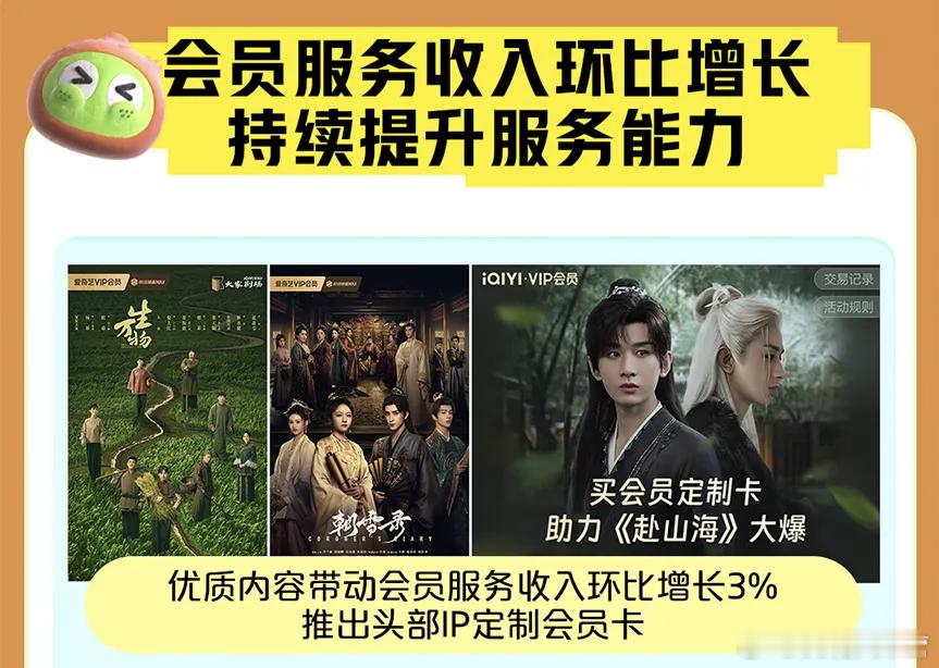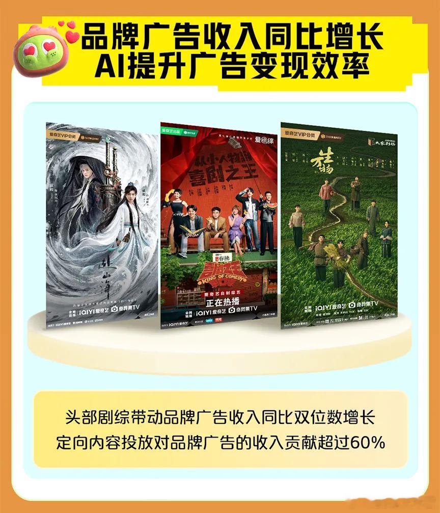 爱奇艺2025Q3财报里提到的《生万物》热门剧集《生万物》网台双爆!“大家剧场”新作《生万物》成全民爆款,2025年单日云合热播榜市占率第一,并创下中央电视台电视剧频道集均收视新高;优质内容&头部剧综!