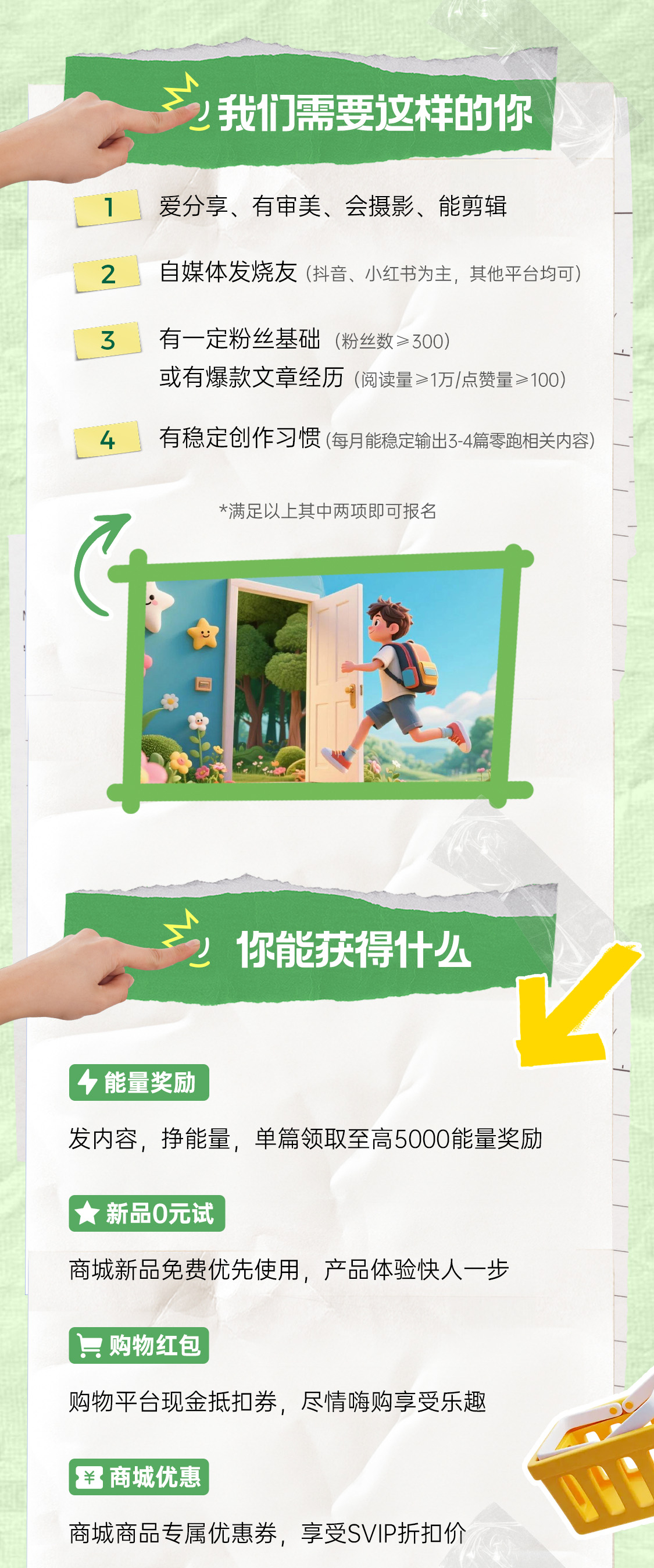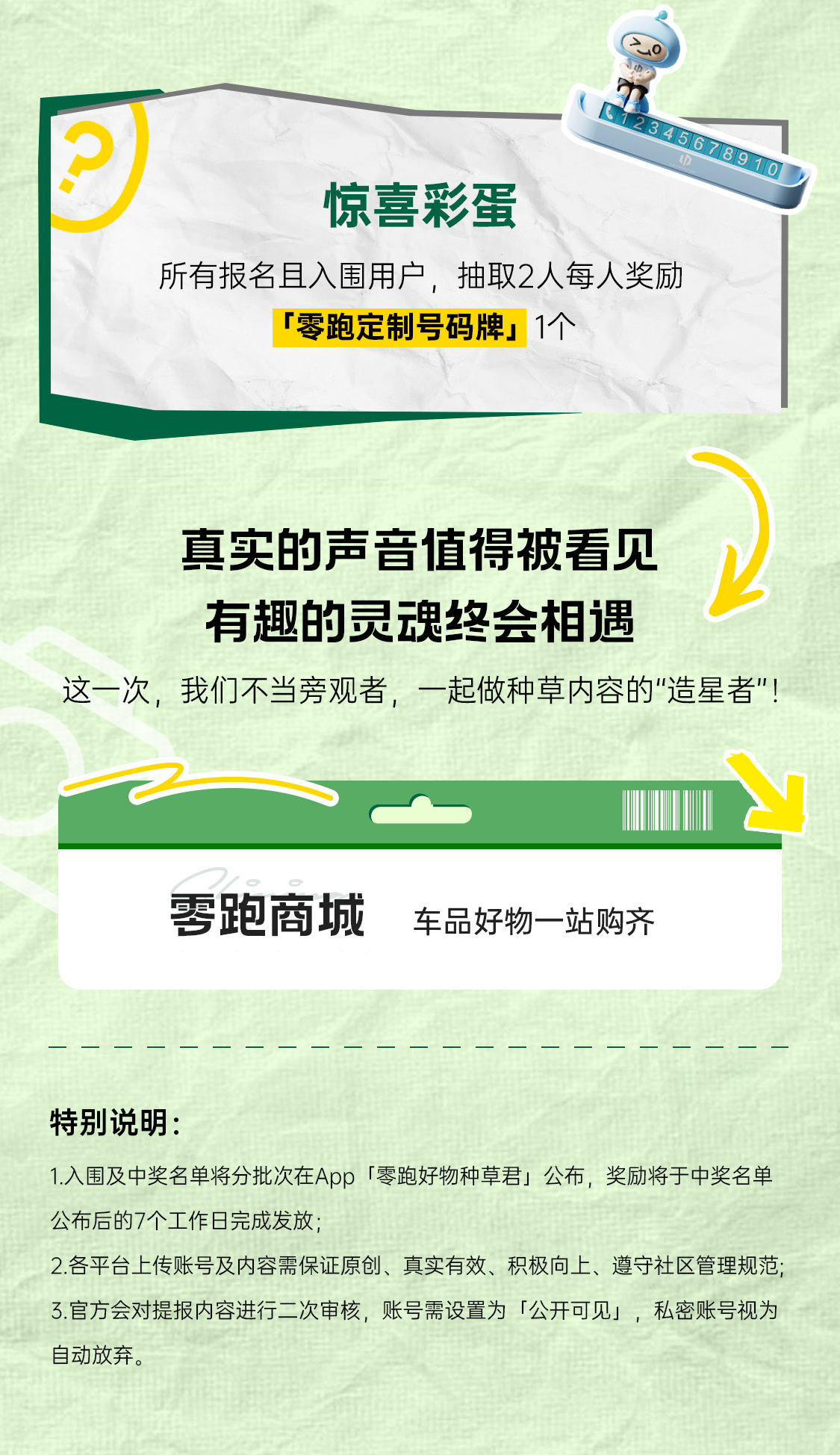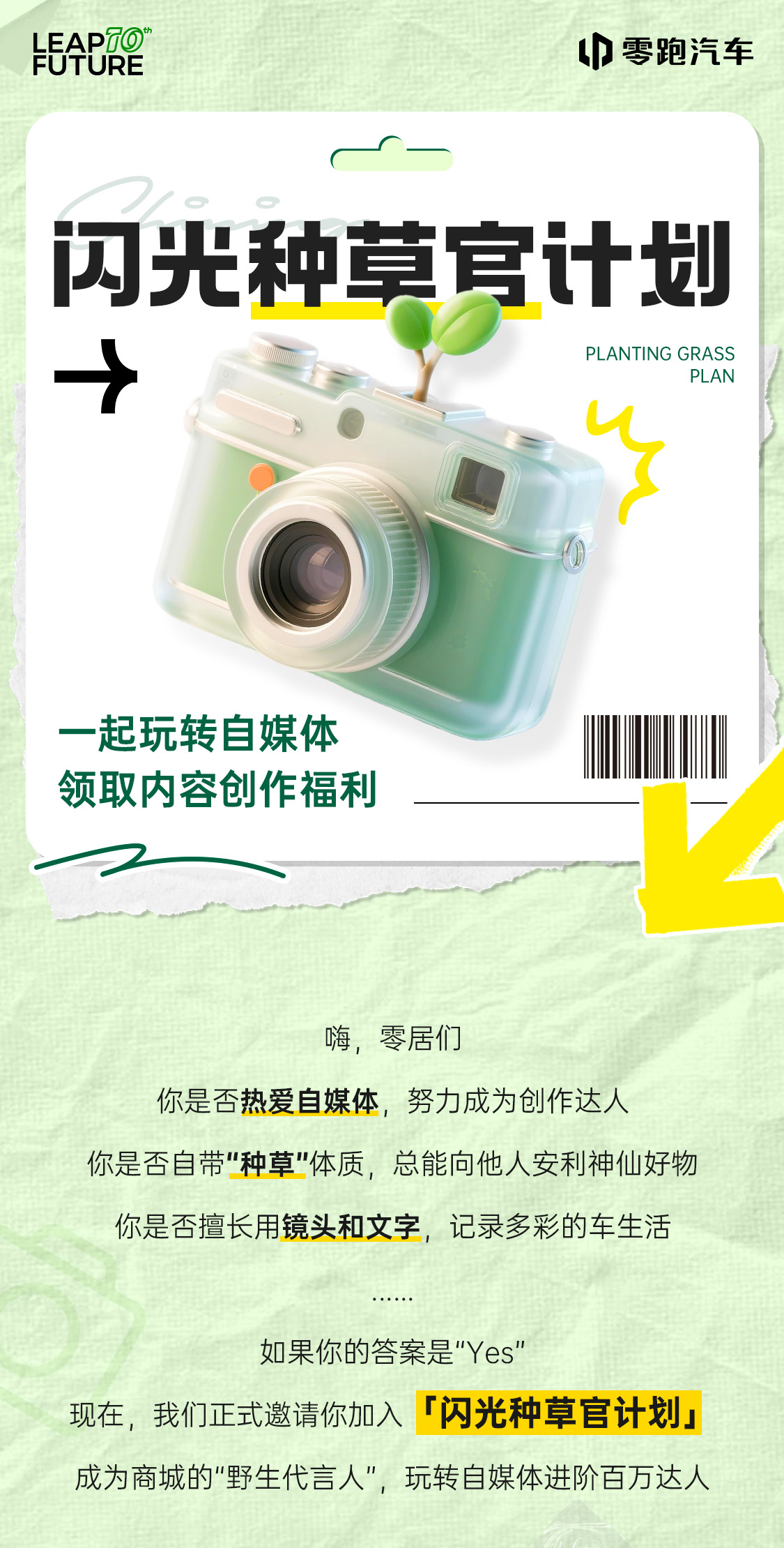 寻人启事:超会“种草”的你,别藏啦!零跑App商城「闪光种草官计划」启动🎁不仅有能量值奖励,还能0元抢先体验新品、享SVIP专属折扣等多重权益,持续输出,持续收获!✅报名仅需2步,轻松开启自媒体之路和零跑一起探索内容创作,我们陪你从“喜欢分享”进阶到“百万达人”还等什么?赶紧报名参与,下一个闪光达人,也许就是你!戳图获取更多参与信息!评论区分享你向别人种草最多的商城产品是什么?【转发+评论,抽取2位幸运儿每人赠送[零跑定制停车牌]1个】