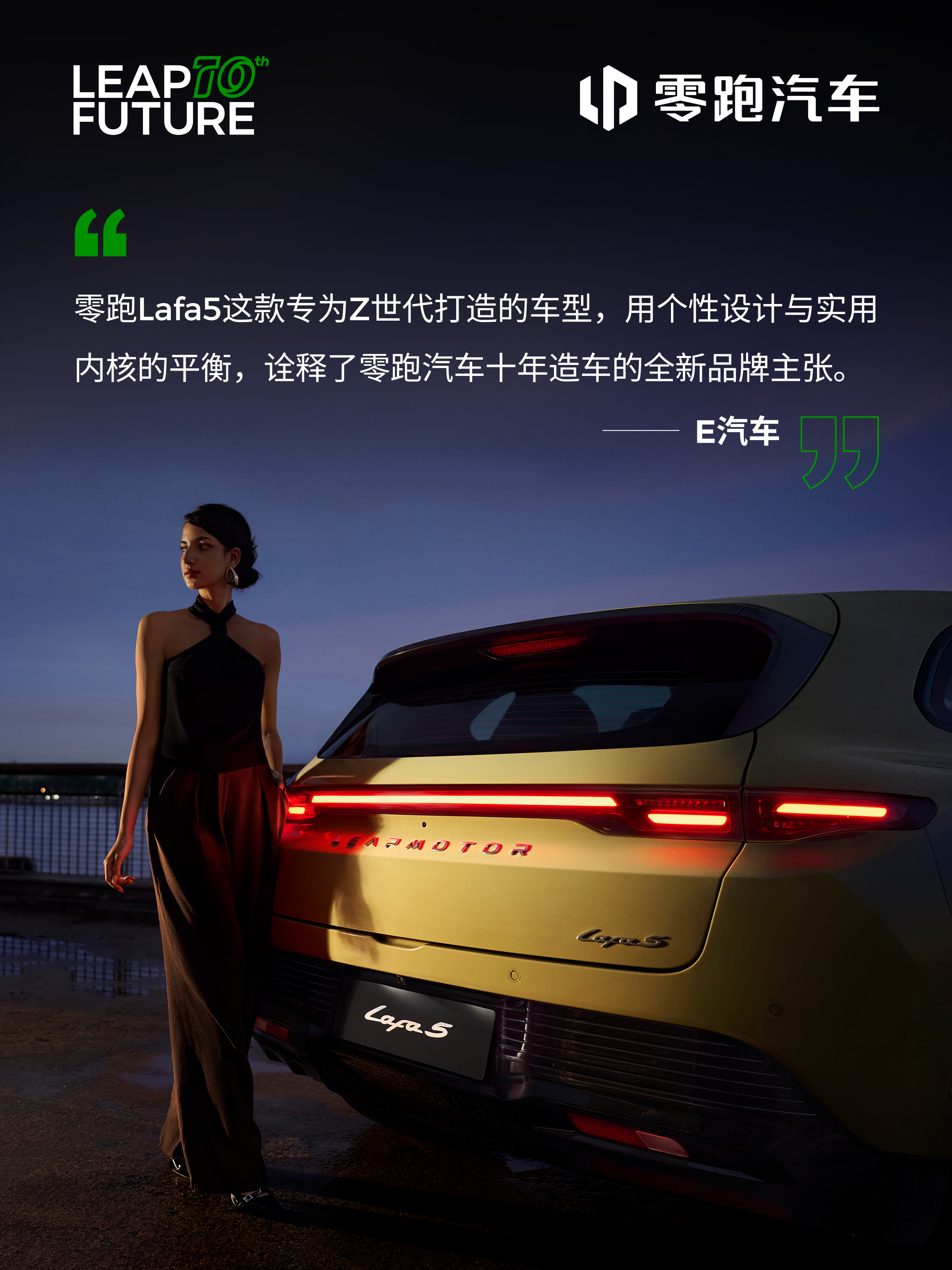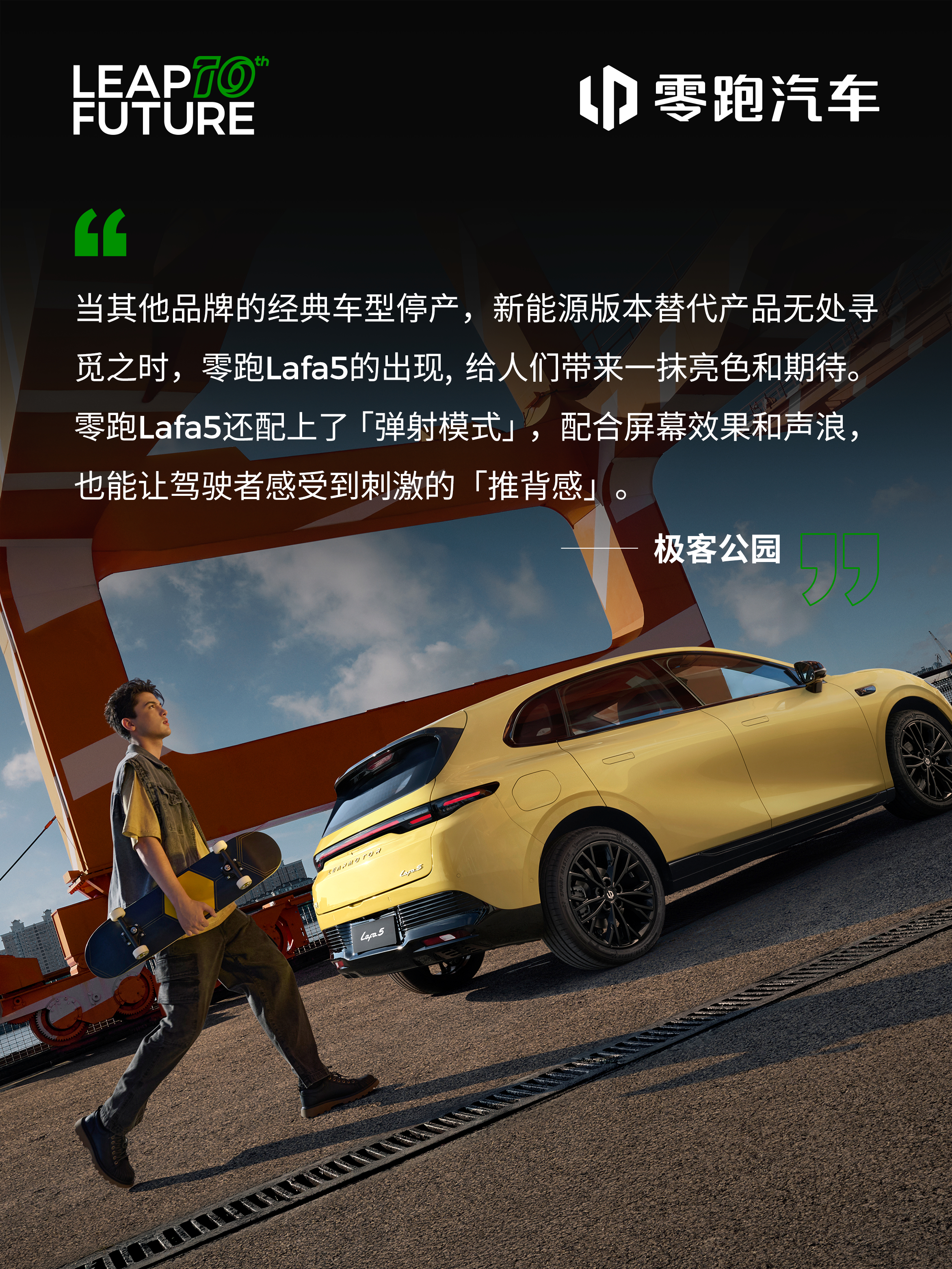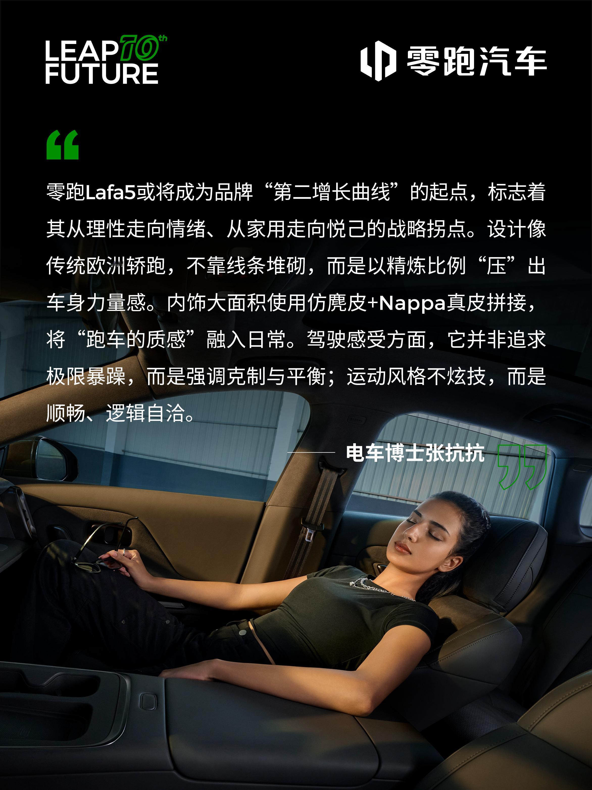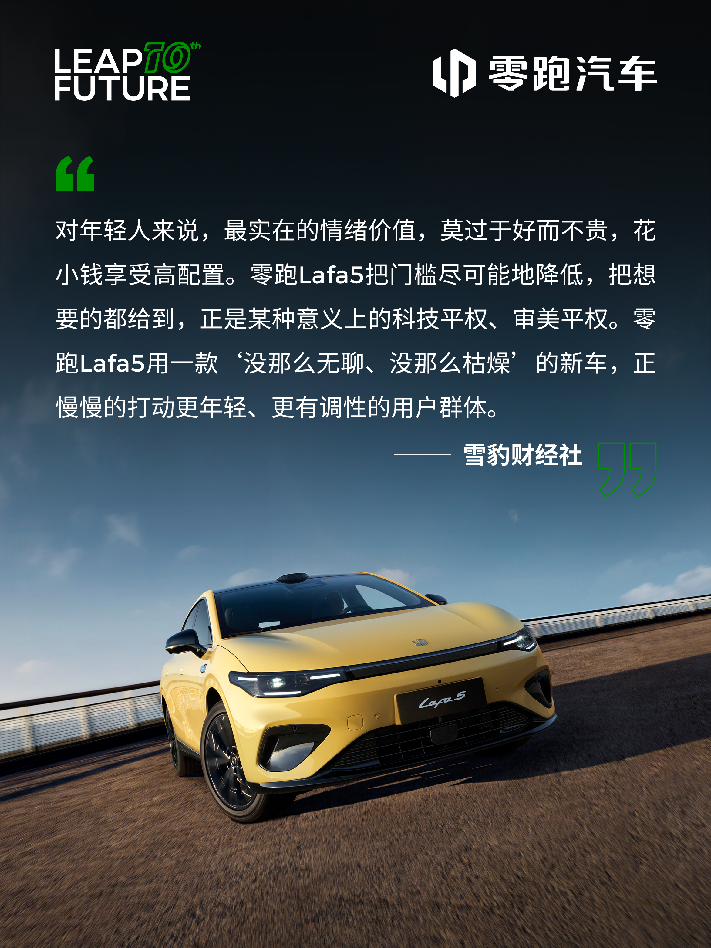 预售发布会后,零跑Lafa5凭实力出圈听听试过的人怎么说?“零跑Lafa5,正以颜值、实力,邀请不甘平庸的年轻人,共同书写这个时代的汽车传奇”“零跑Lafa5是中欧团队联合调校的底盘,居然配了弹射起步,这哪里是家用车,分明是穿着西装的田径运动员”个性依旧,试过就上头⚡️11.21广州国际车展,等你亲自来体验!