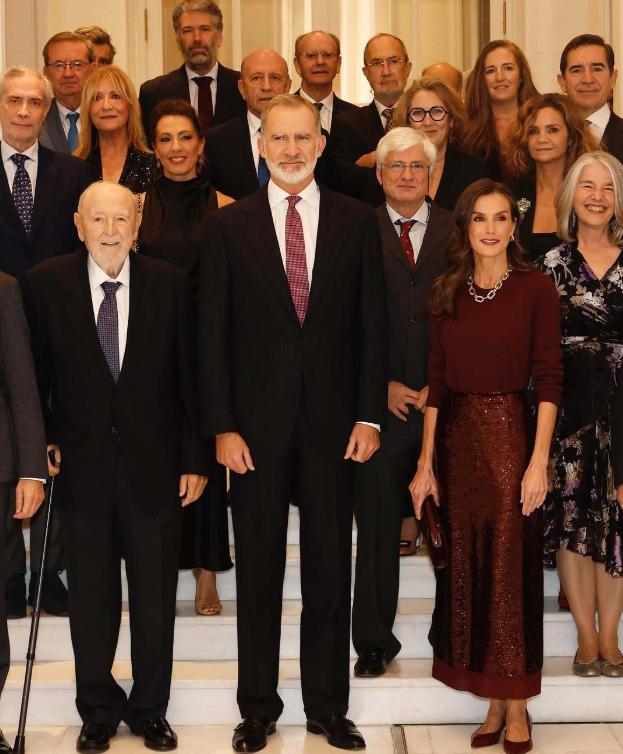 西班牙国王从北京回国后出席颁奖礼还上台致辞!11月18日费利佩国王访华回国后出席一年一度的新闻奖颁奖礼,这也是他从北京回到西班牙王宫后首次和王后陛下合体亮相。 从北京回国休息了好几天,国王陛下的气色还不错,之前见了泽连斯基,不过王后并没有亮相,这又穿着一身正装为新闻奖获得者颁奖,作为活动方邀请的贵宾,还上台发表了演讲,还出席了当天的颁奖晚宴。 这样的西班牙国王好帅气,和参加活动的人合影,站在C位个头瞩目,还有王后陛下也来了,一身枣红色裙装时髦又不失女人味,确实好看。