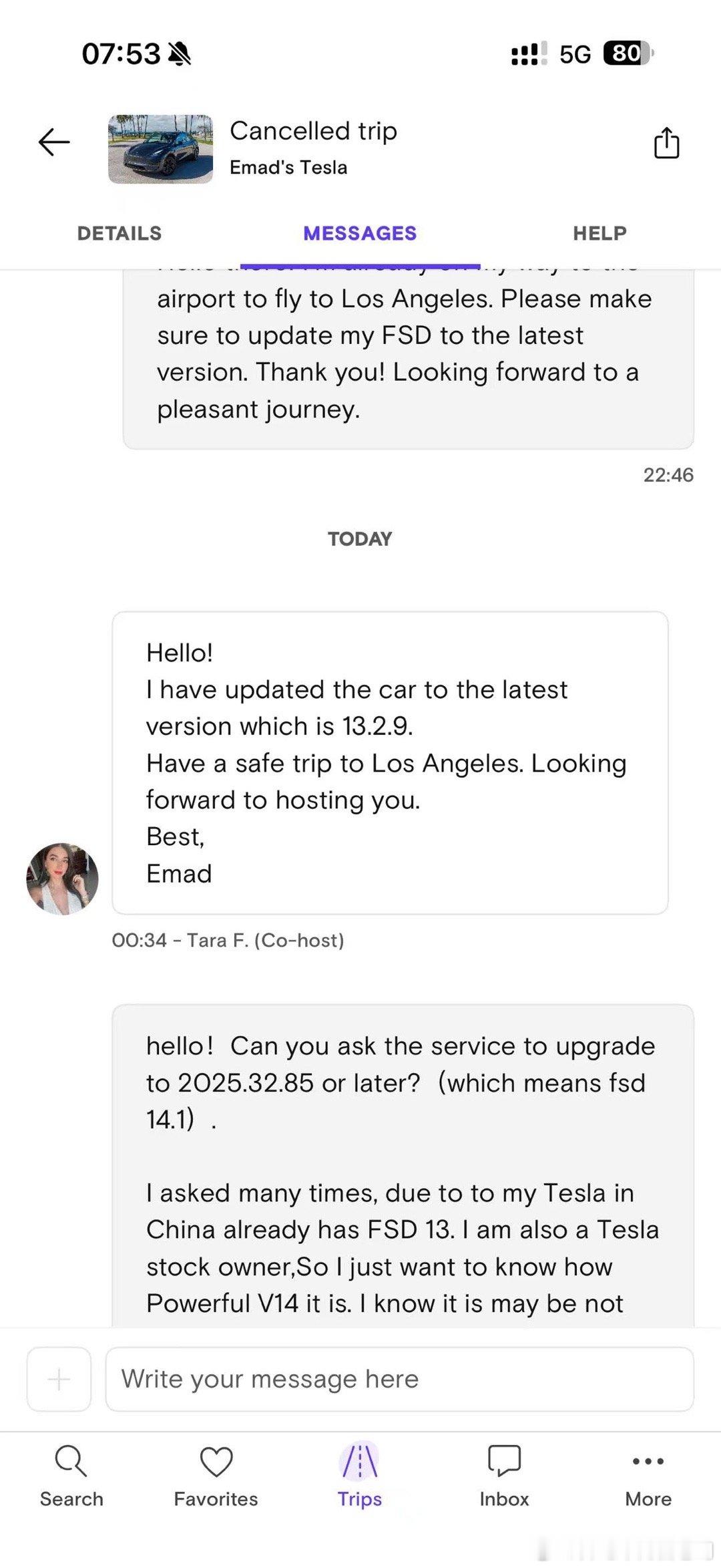 本来这次跟 主要计划去LA试FSD V14的,现在刚刚登机,情况可能有变我们在Turo上租的一台Model3,说好的带最新的FSD,结果他们理解的最新只有V13.29……而且Turo上巨坑,不下单没法直接跟卖家沟通,不沟通仅从描述就无法得知对方的FSD是哪个版本,下了单又没法退……目前来说V14暂时没法体验了,不知道微博上有哪些朋友路子野的可以告知一下。目前V14还没全量推,所以全美也没多少但来都来了,总得开辆特别点的车车吧咬咬牙租了台Cyber truck,尼玛两天828刀……3000块人民币一天租一台皮卡,哎,脑子多少有点进水了