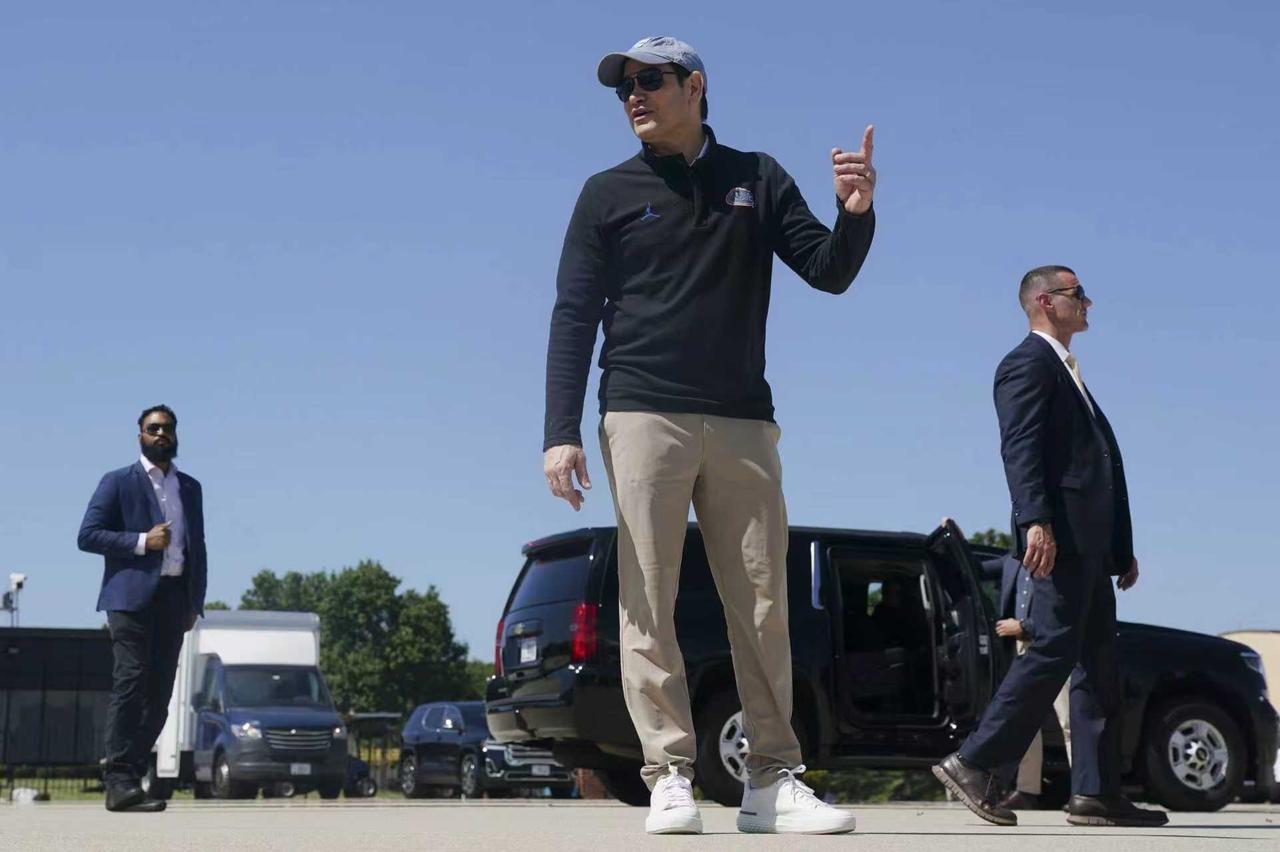 卢比奥国务卿机场采访照。 少见的休闲装。