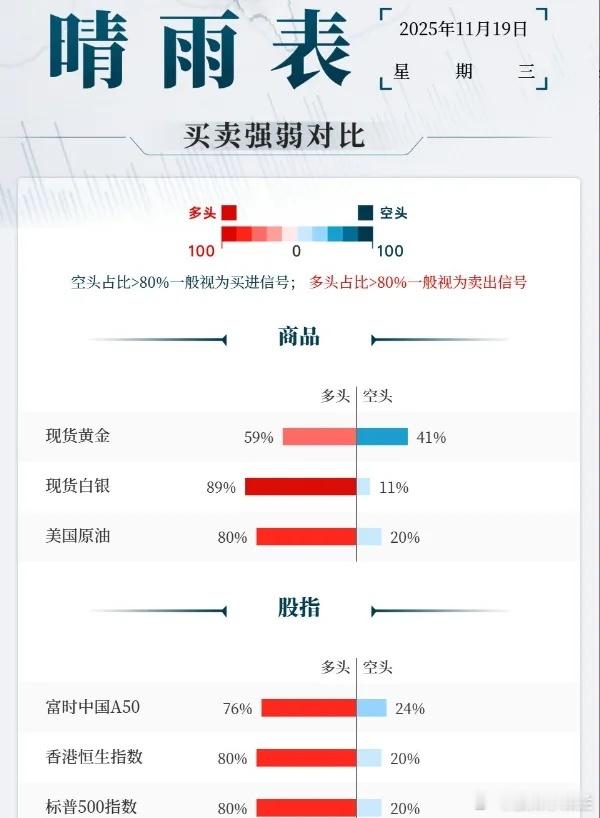周二国际金价震荡运行,延续回调趋势,继续收跌,不过跌势明显放缓。估值担忧打击美股科技股,标普500指数连续第四个交易日下跌,纳指收跌1.2%,多日来现卖出信号。美国积压数据陆续公布,市场等待有关美联储下一步行动的信号,后市金融市场的情绪如何?通过下图,可以明显看出:黄金的多头比例为59%,略微下降几个百分点;空头比例略微提升,现在比例为41%。