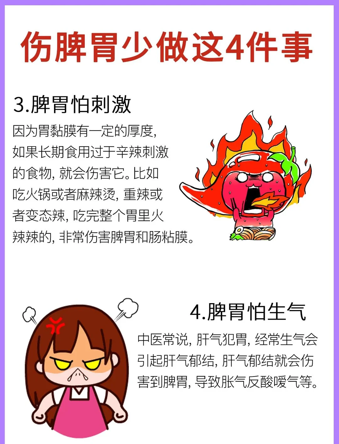1.脾胃怕寒凉 2.脾胃怕过饱 3.脾胃怕刺激 4.脾胃怕生气