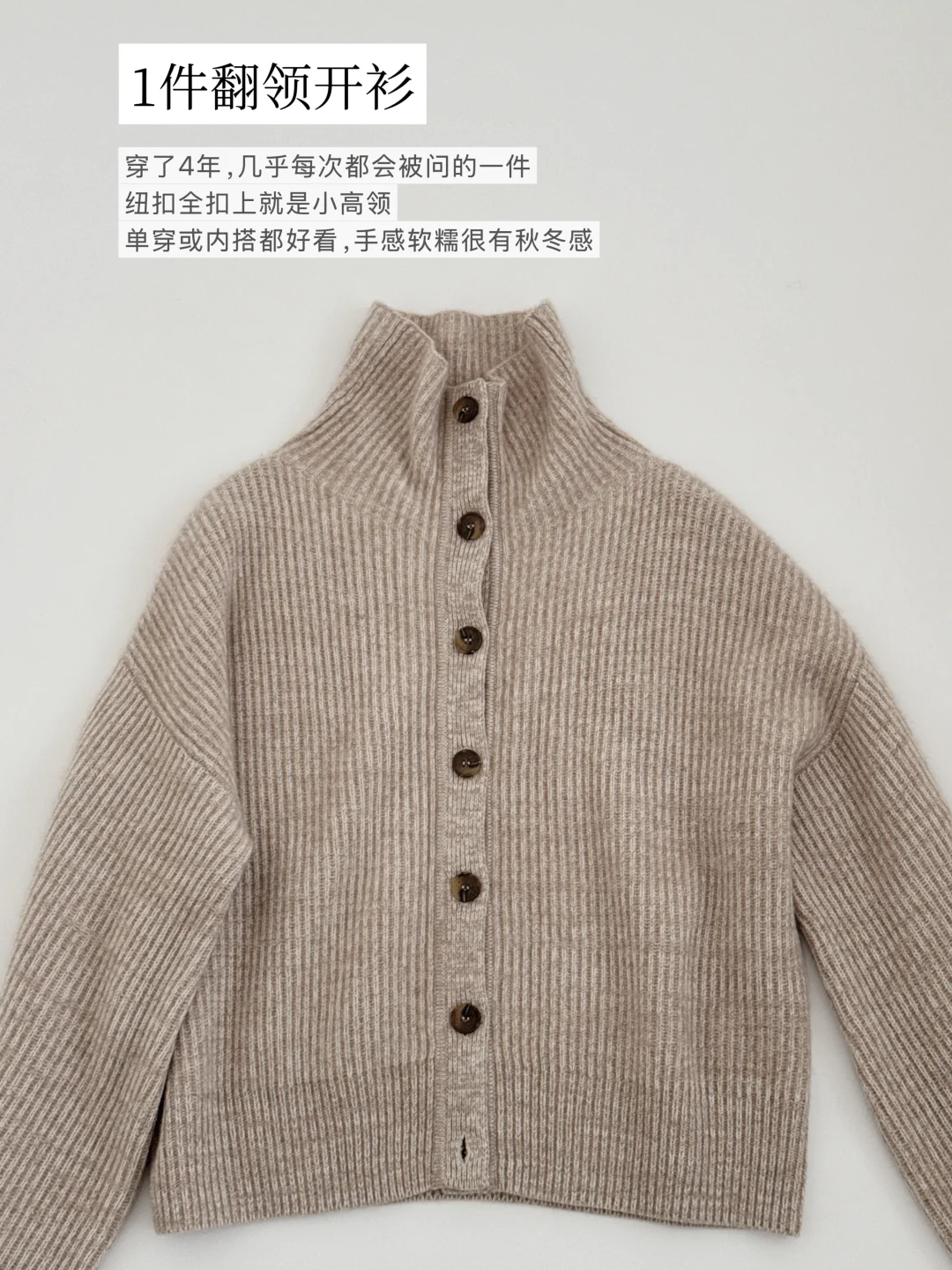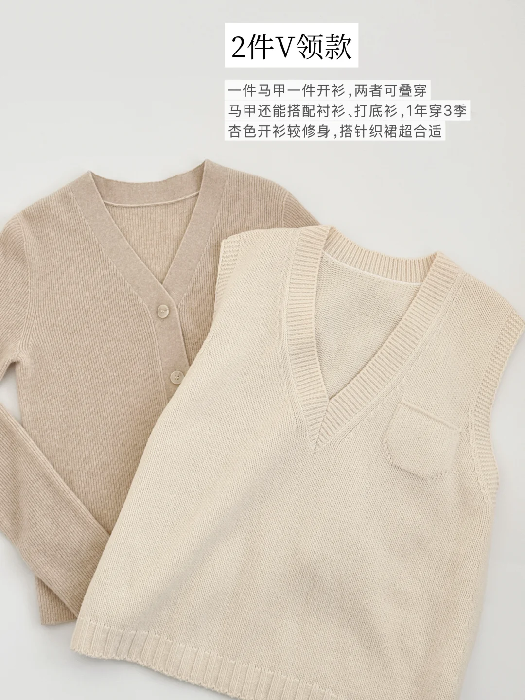 款式可以丰富化,像经典的圆领、V领、翻领都是实穿好搭的,开衫和马甲能一年穿3季,利用率非常高。
