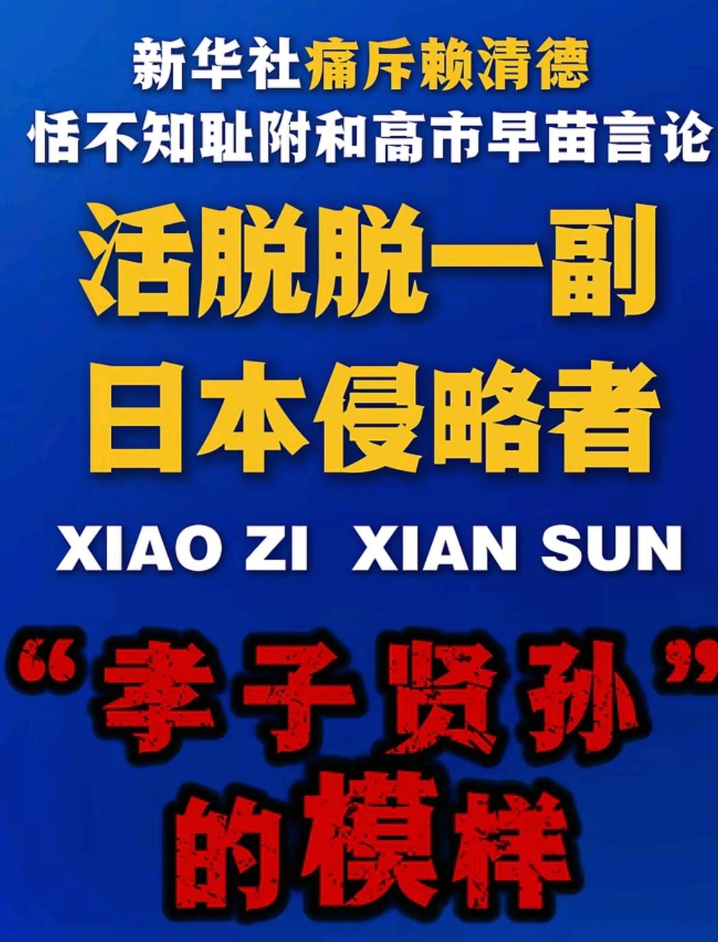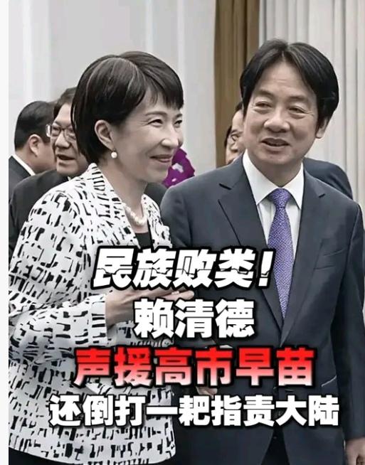 赖清德被定性为日本侵略者“孝子贤孙”的模样了,既然赖清德不认祖先,那我们就不客气了,要认贼作父,我们就得把赖清德当成賊来对待了。 难怪半个月前,台湾网红馆长要帮赖清德到福建漳州寻根祭祖,就是希望赖清德能够回心转意,认祖归宗,做出有益的事情。 但赖清德的所作所为还是令大家失望了,竟然附和高市早苗的言行。