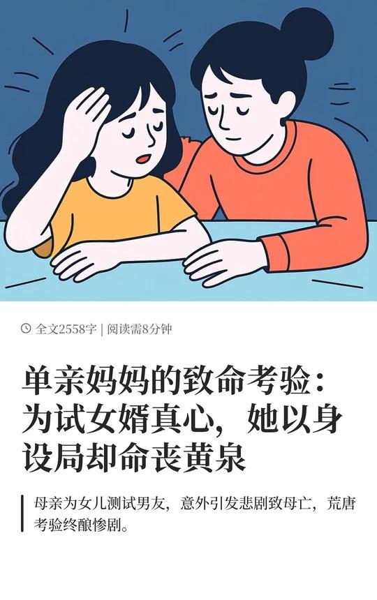 单亲妈妈的致命考验 单亲妈妈的致命考验:为试女婿对女儿的真心,她以身设局却命丧黄泉。 真实案件 错位的婚姻 悬疑推理 母爱是一场得体的退出