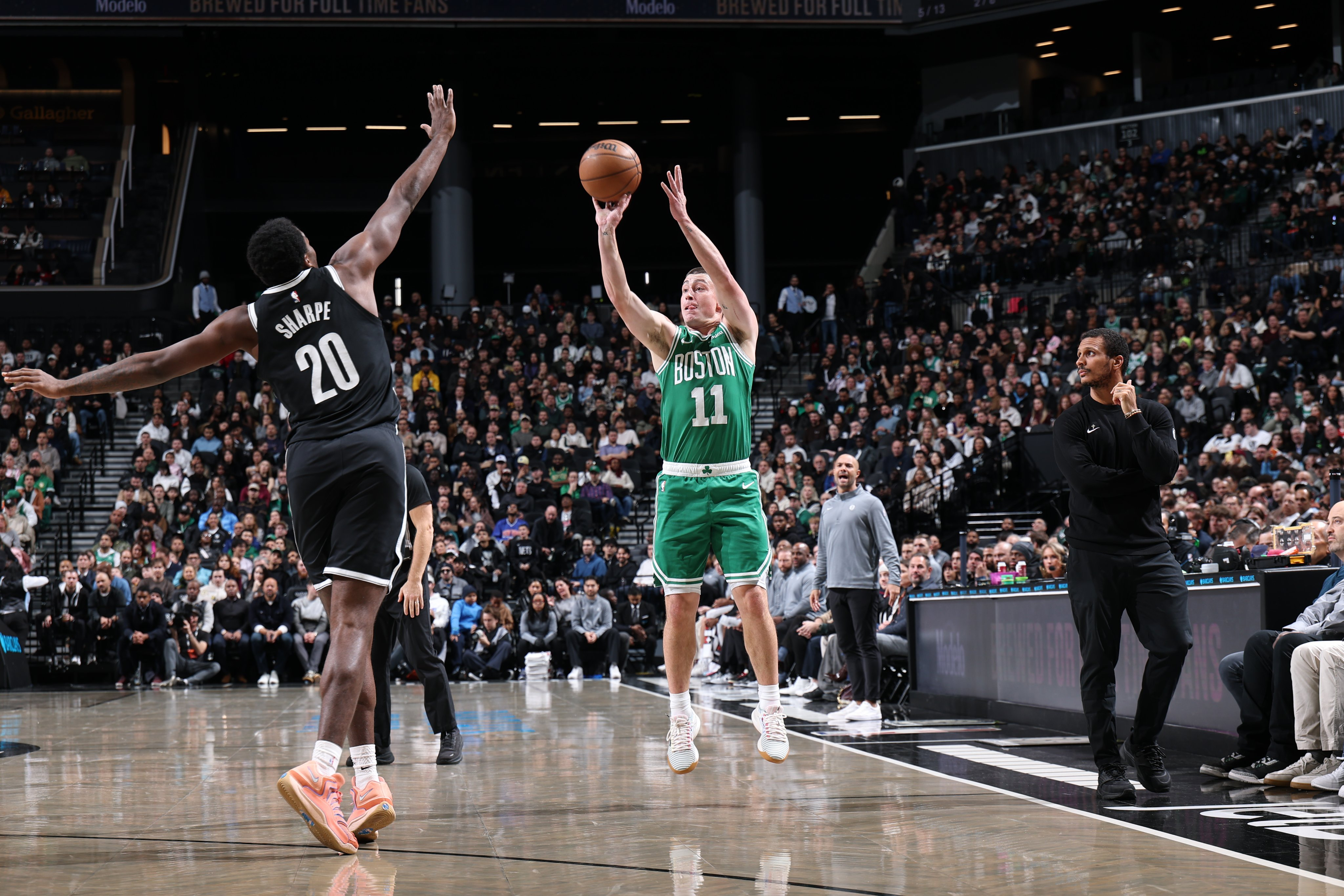 鸭王生涯三分命中数破700,上升至凯尔特人队史第8位。1. Paul Pierce – 1823 2. Jayson Tatum – 15463. Jaylen Brown – 1171 4. Antoine Walker – 937 5. Marcus Smart – 9116. Ray Allen – 7987. Al Horford – 7128. Payton Pritchard – 700