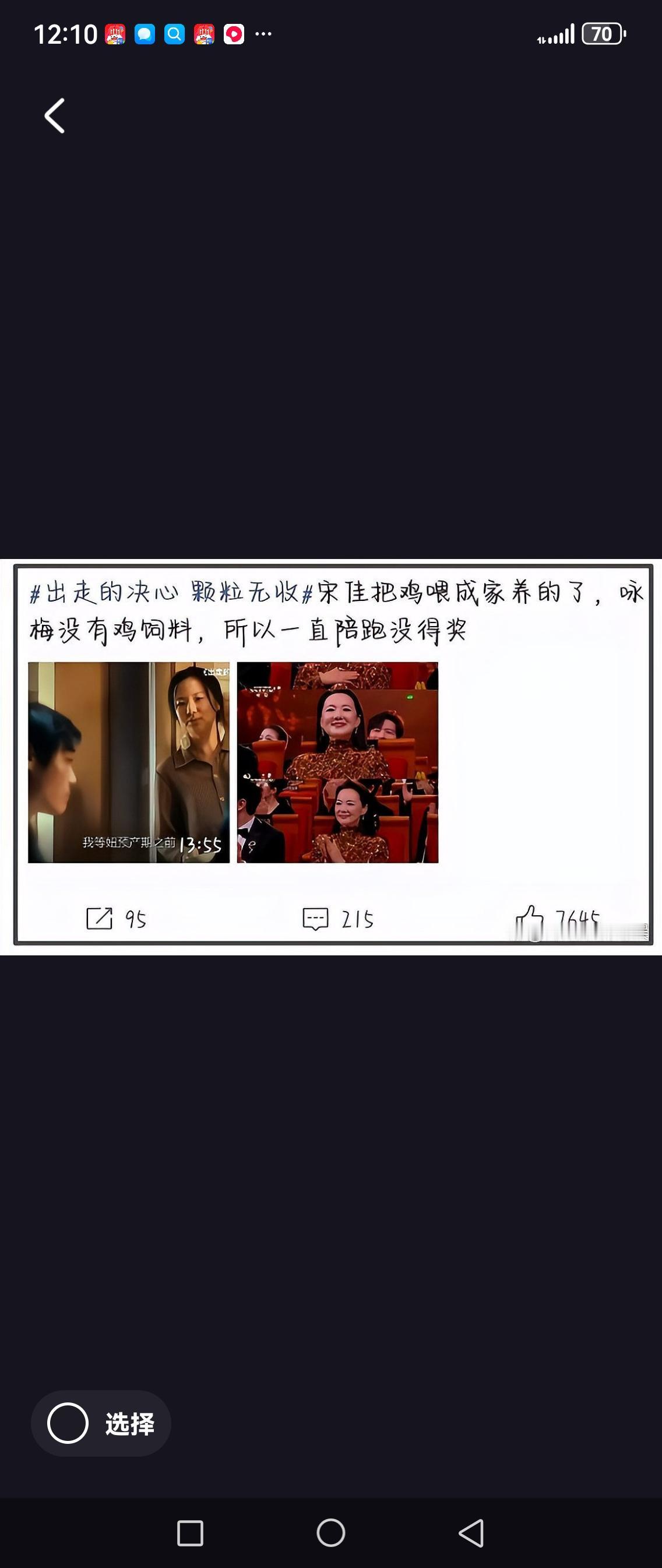 金鸡奖落幕,咏梅陪跑却成焦点,一句“新的一天该有的都有”为何引爆网络热议? 金鸡奖颁奖典礼上,咏梅凭借《出走的决心》中的出色表现,赢得了高达68%的观众支持,然而最终却未能捧得最佳女主角奖杯,这一结果让不少观众感到惋惜。不过,咏梅却以微笑面对,一句“新的一天该有的都有”迅速在网络上走红。网友们纷纷力挺她,称赞她展现出了“举重若轻的艺术人格”。咏梅在影片中的演技得到了观众的高度认可,她饰演的角色深入人心,不仅展现了女性坚韧不拔的精神,更让观众看到了她对角色的深刻理解和精湛演技。尽管未能获奖,但咏梅的淡然态度却赢得了更多人的尊重和喜爱,她用自己的方式诠释了对艺术的坚持和对生活的热爱。 咏梅的淡然面对得失,不仅是对自己演技的肯定,更是对影视行业浮躁风气的一种有力反思。这样的态度值得我们每个人学习,你如何看待咏梅的这种态度呢?快来评论区留言分享你的看法吧!金鸡奖