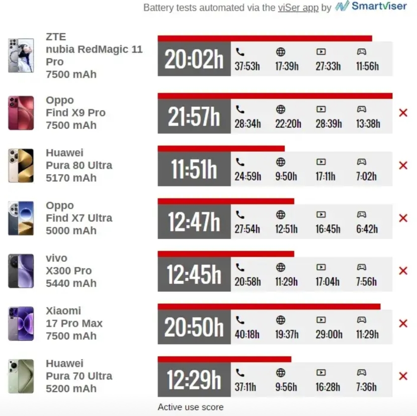 你不看电池容量吗?华为的都是五千一二,x300也是五千多,续航一样的啊!