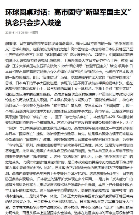 高市早苗的支持率这几天提升到了69%,这刚好应验了沈逸教授的那句话:现在全体中国人必须要做一个抉择,是现在趁着日本军国主义还没有完全起来,来解决这个问题,还是等到以后日本军国主义羽翼丰满之后,付出更大的代价来解决。 因此,真的不能再等待了,不能把这个问题留给我们的子孙后代。 这个高市早苗,本就不是什么 “政坛女强人”。而是日本右翼圈子里的 “大姐大”,是把 “复活军国” 刻进骨子里的狂热分子。更离谱的是,她还把歌颂希特勒的书当 “治国宝典”,公开说里面的选举策略 “值得学”。 这些不是疯话,是她实打实的操作,而日本居然有近七成选民支持她,这背后,藏着的是美日联手给她递的 “定心丸”。 美国想让日本当印太战略的 “马前卒”,就睁一只眼闭一只眼放任她扩军,高市早苗访美时,和美国军方偷偷聊的不是贸易,是怎么卖武器、怎么联手盯着亚太。 转头日本就打破规矩,给菲律宾送了 12 艘高速巡逻艇,明晃晃对着南海,她还盯着 AUKUS 不放,借着帮澳大利亚造核潜艇的由头,悄悄摸核技术的边。 私下里甚至跟美国大使提 “核共享”,一步步试探 “无核三原则” 的底线,美国不管不问,反而乐见其成 —— 毕竟有人替自己挡在前面,何乐而不为? 最让人警惕的是,她还在拉着韩国右翼 “抱团”。 尹锡悦政府草草了结慰安妇赔偿问题,高市早苗第一时间点赞,说 “韩方终于理性了”,转头两国就搞了第一次离岛防卫联合军演,演习场离中国不远,明摆着是 “联手施压”。 这种东亚右翼的默契,比单独一个国家搞事更危险,高市早苗能涨支持率,全靠一套 “煽动套路” 玩得溜。 日本经济停滞、老龄化严重,年轻人心里慌,她就把这股焦虑往 “中国威胁” 上引。 在社交平台上,一批收了右翼资助的网红天天发 “中国渔船占了日本海域”“台湾有事冲绳就危险” 的假消息。高市早苗再拿着这些假消息去演讲,把自己塑成 “能保护日本的强硬领袖”。 结果呢?现在日本 18 到 34 岁的年轻人里,过半觉得 “必须强化军事”,这些人成了她最铁的支持者。嘴上喊着 “自卫”,她的动作却全是 “备战” 的味道。 今年日本防卫费飙到 7.7 万亿日元,三成的钱都花在了西南诸岛,宫古岛、石垣岛堆了 8 个导弹发射阵地,射程能覆盖台海和南海,明晃晃对着中国家门口。 她还逼着丰田、三菱这些民企,留着三成产能造军火,这不就是二战前 “全民备战” 的老路子? 最吓人的是,她还在打 “兵役” 的主意,让 18 到 22 岁的年轻人接受半年军事训练,说是 “强化志愿兵役”,其实就是在铺垫 “全民皆兵”。 别觉得 “军国主义复活” 是吓唬人。 当年日本军部就是从改教科书、扩军备、煽动情绪开始,一步步把国家拖进战争,现在高市早苗换了个包装,用 “应对威胁”“保护国家” 当幌子,干的还是老勾当。 69% 的支持率,本质上是日本社会忘了历史的痛,以为和平能靠 “忍” 来,却不知道纵容右翼,就是在给战争埋雷。 沈逸教授的抉择之问,其实答案很简单,和平从不是让出来的,是守出来的,现在高市早苗就像踩着油门往悬崖冲,69% 的支持率就是她的燃料。 我们现在不通过外交施压、舆论揭露、军事威慑拦住她,等她把和平宪法改了、国防军建起来、甚至摸到核门槛,到时候再想阻止,付出的代价可就不是现在能比的了。