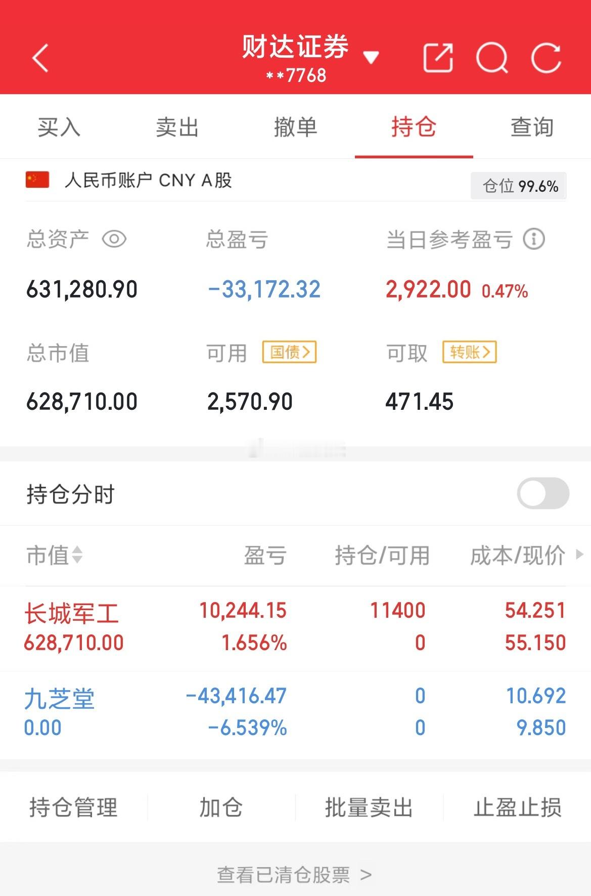 50w实盘挑战一年做到300w(第23天)总资产:631280当日盈亏:+2922持有:卖出:九芝堂买入:长城军工温馨提醒:以上是韭皇擒妖记录,不作为你的投资依据,股市有风险,投资需谨慎!