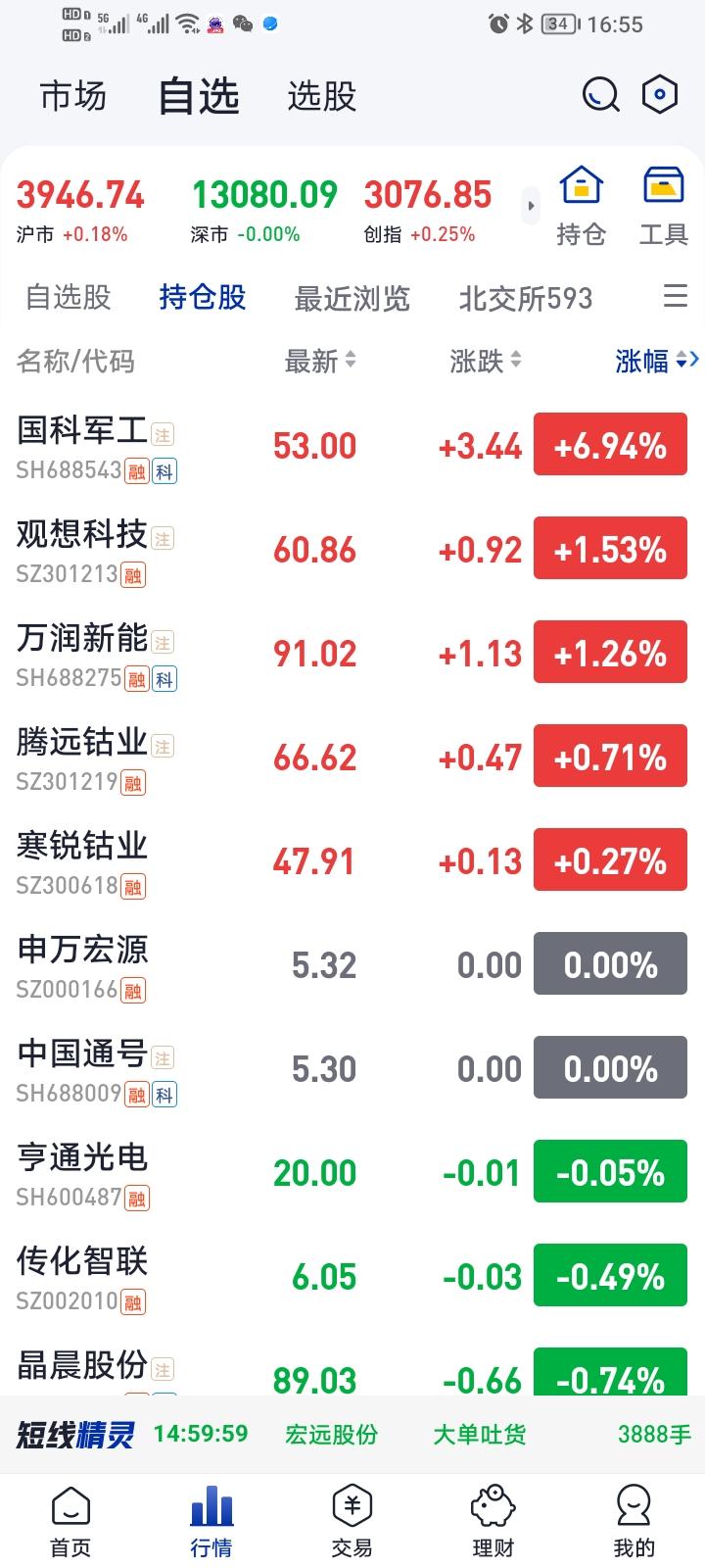 指数飘红,账户却一片绿意,再没有比这更让人沮丧的事了。国科卖得太早,才赚了3个多点。昨天尾盘买入的钴钴,开盘冲高时未达目标成交价,第二次冲高时做了T操作。 今日账户呈绿色,主要是一只重仓股跌了3个多点,芯片板块也表现不佳。尾盘我把今天T出的资金全用来补仓钴钴,赌明天开盘冲高时再做个T,这就相当于满仓过夜了,明天可千万别出岔子。