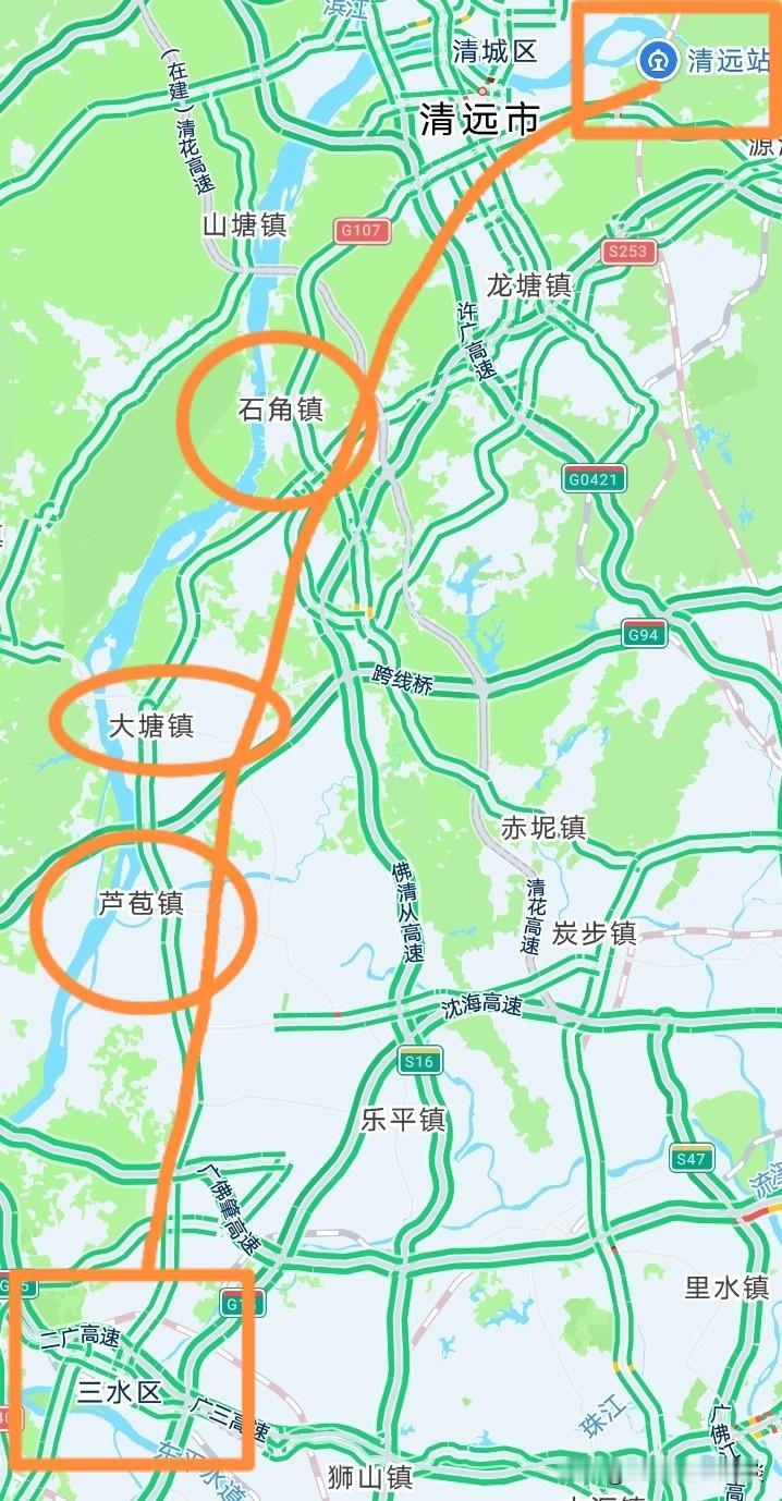 广东城轨的三水北站可修建一条联络线至洲心站(清远高铁站),也就是武广高铁(京广高铁武广段)的清远站。城轨站点为洲心站,目前三水北站前往清远不太便利。 若修建一条联络线,途经山水大道(即 240 国道)、芦苞、大塘、石角,接入清远市区,与清远高铁站接驳,将极大方便三水人前往清远乘坐高铁,无需绕道广州,既快捷又便利。 如此一来,还能节省大量的时间与金钱成本。倘若从三水乘坐这条城轨到清远乘坐高铁北上,前往十几二十个省份,都比从广州南出发便利得多。从广州南到清远既耗时又费钱,而这条线路还能解决中间三个街镇的轨道交通问题,可谓一举两得。大家觉得如何? 湛江北站联络线 广州高铁北站 佛山高铁站台 佛山高铁站 佛山北站 佛山新高铁站 清远火车站