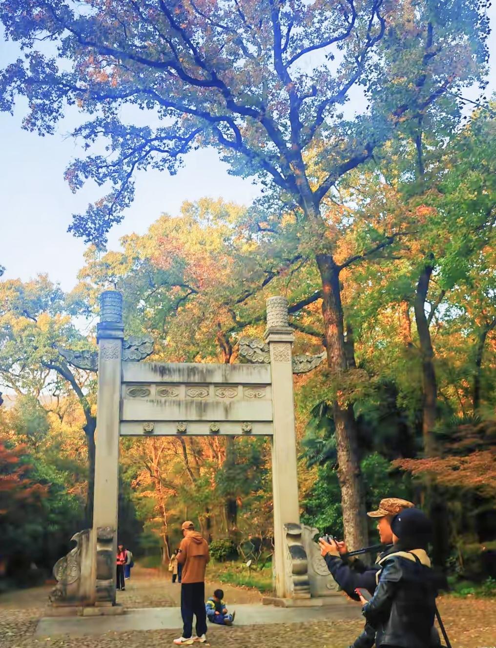 南京的深秋,美成金陵。很多人想拍梧桐大道,但是那条陵园路上的人实在太多了,拍照避不开,我知道周边还有一条梧桐道人少景美,非常出片,那就是灵谷寺旁的梧桐道。 最近到南京中山风景区来游玩,拍过燕雀湖的落羽杉,拍过600米石象路,别被堵在陵园路的梧桐大道上,去灵谷寺,那里有不一样的风景。 灵谷寺风景区有灵谷寺,灵谷塔、无梁殿、宝公塔、三绝碑、万工池、灵谷深松等名胜古迹。历史悠久氛围感十足,是赏秋的好地方。 灵谷寺的素面也不错,路过可以去品尝一下。 灵谷寺出门左转的梧桐路,两侧的梧桐排列整齐,高耸入云,拍摄起来很有感觉。