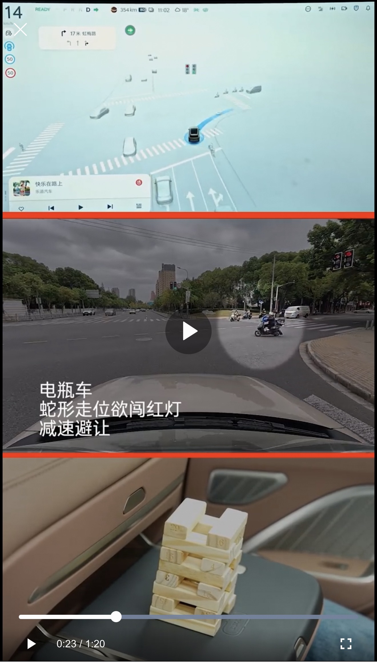 乐道的Coconut 椰子 2.1.0,将于12月底全量推送,这次最大的更新之一,就是端到端辅助驾驶版本上车。官方这个积木视频有点意思,用它来体现横纵向的加减速平顺性,期待有机会试驾哦。