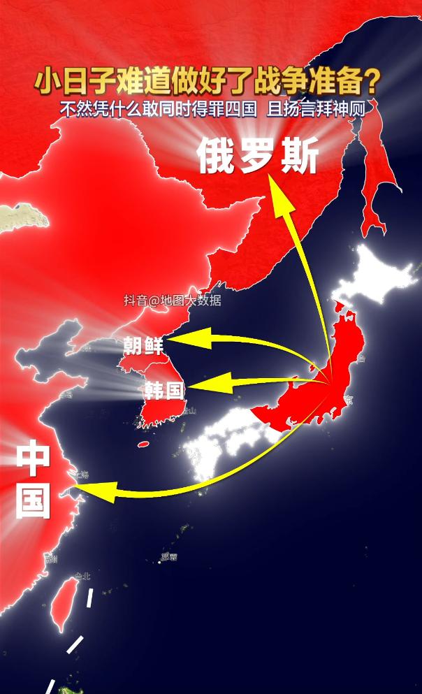 中俄朝对日本发出警告!日本打算以1打3? 俄罗斯卫星社,日本允许美国部署核武器,继续发展中程导弹,那么,俄罗斯就要重新审视,三位一体核打击战略! 朝鲜社科院,召开了一场历史辩论会,对日本的历史殖民罪行进行清算,罗列1910-1945年罪行清单,以“千年宿敌”定义,强调创伤“永不愈合”,要求日本“千百倍偿还血债”! 那么,这三个大国都说这么狠话了,日本怎么还是我行我素。 即使,专家说给100个胆子,日本都不敢发动攻击,那么,他这么多年以来,悉心发展的军武装备,是给好看而已吗?是摆设而已吗?君不见,密密麻麻的日本军事基地,实力比表面强很多,切不可轻敌! 历史证明,只有绝对的实力,只有绝对够狠,日本才会屈服!怎么破?就要用兵法中说的“侵掠”来解决,也就是“侵掠如火”,用强力迅猛的攻击,不要老是防守!