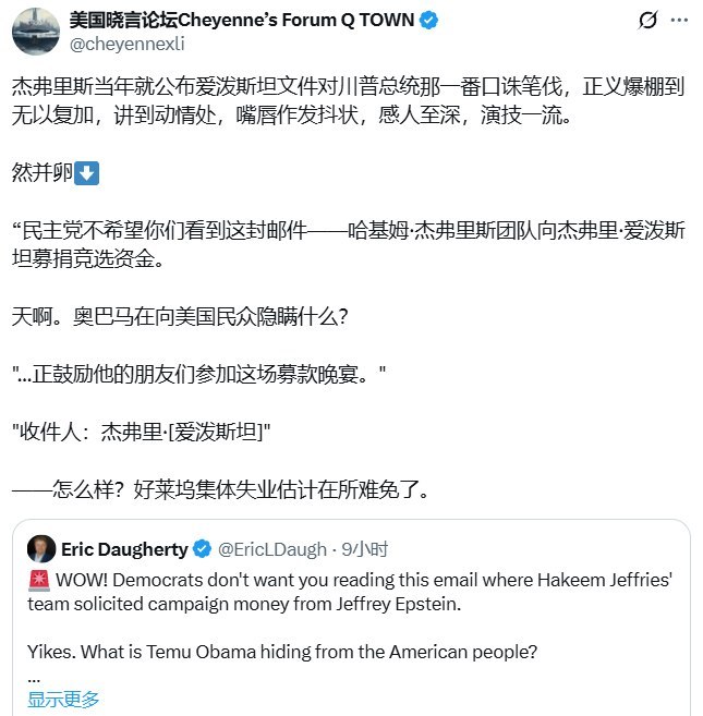 前段时间还有个弱知的大V,就公布爱泼斯坦案的贴子挂我来着,孟德,你再出来说句话。