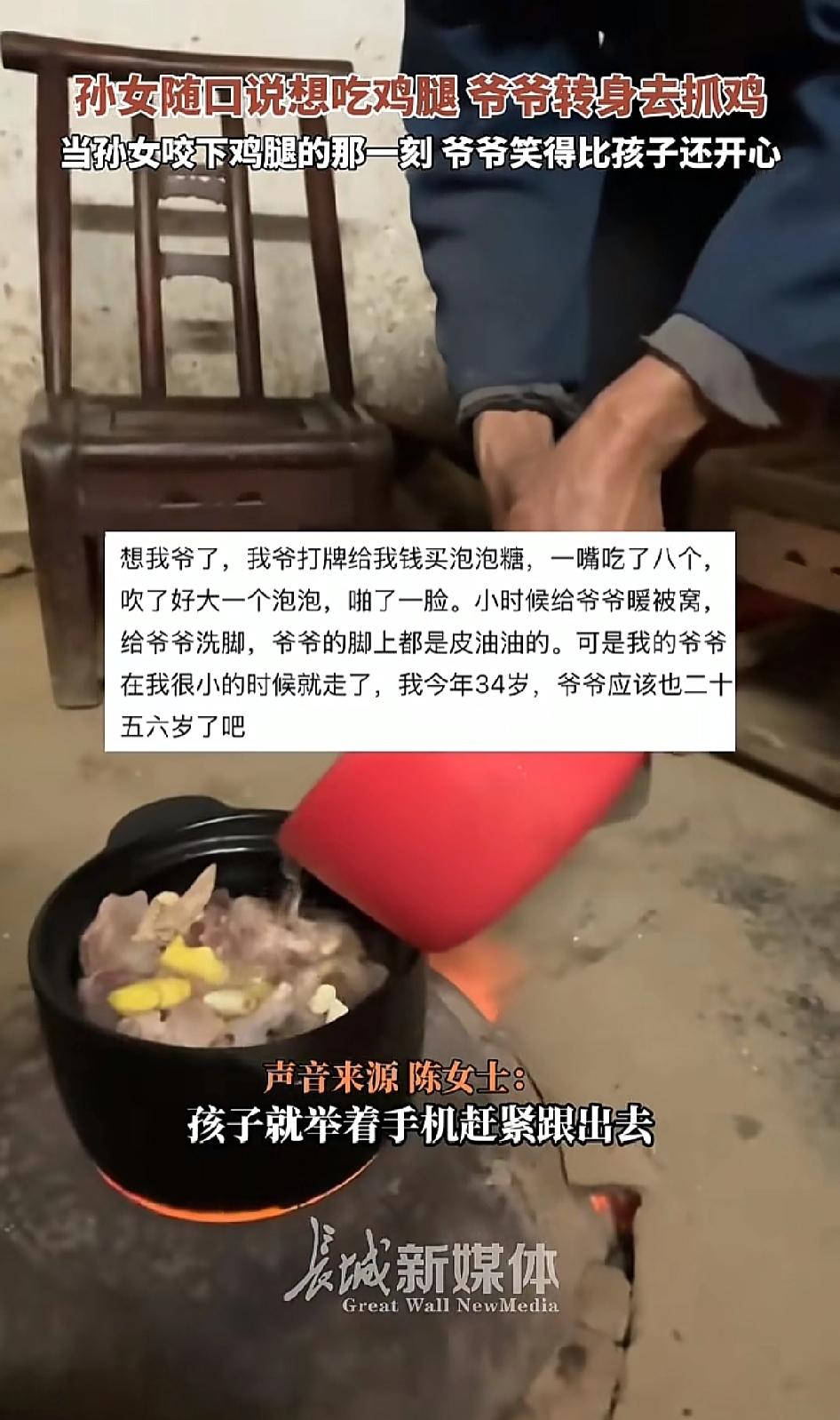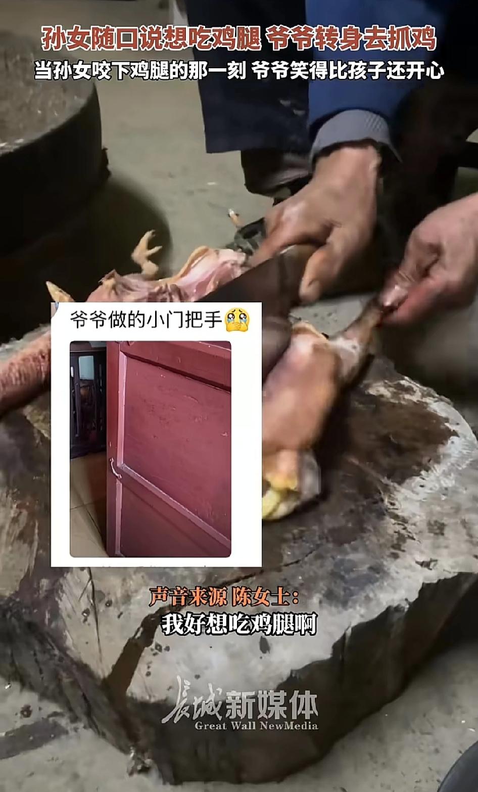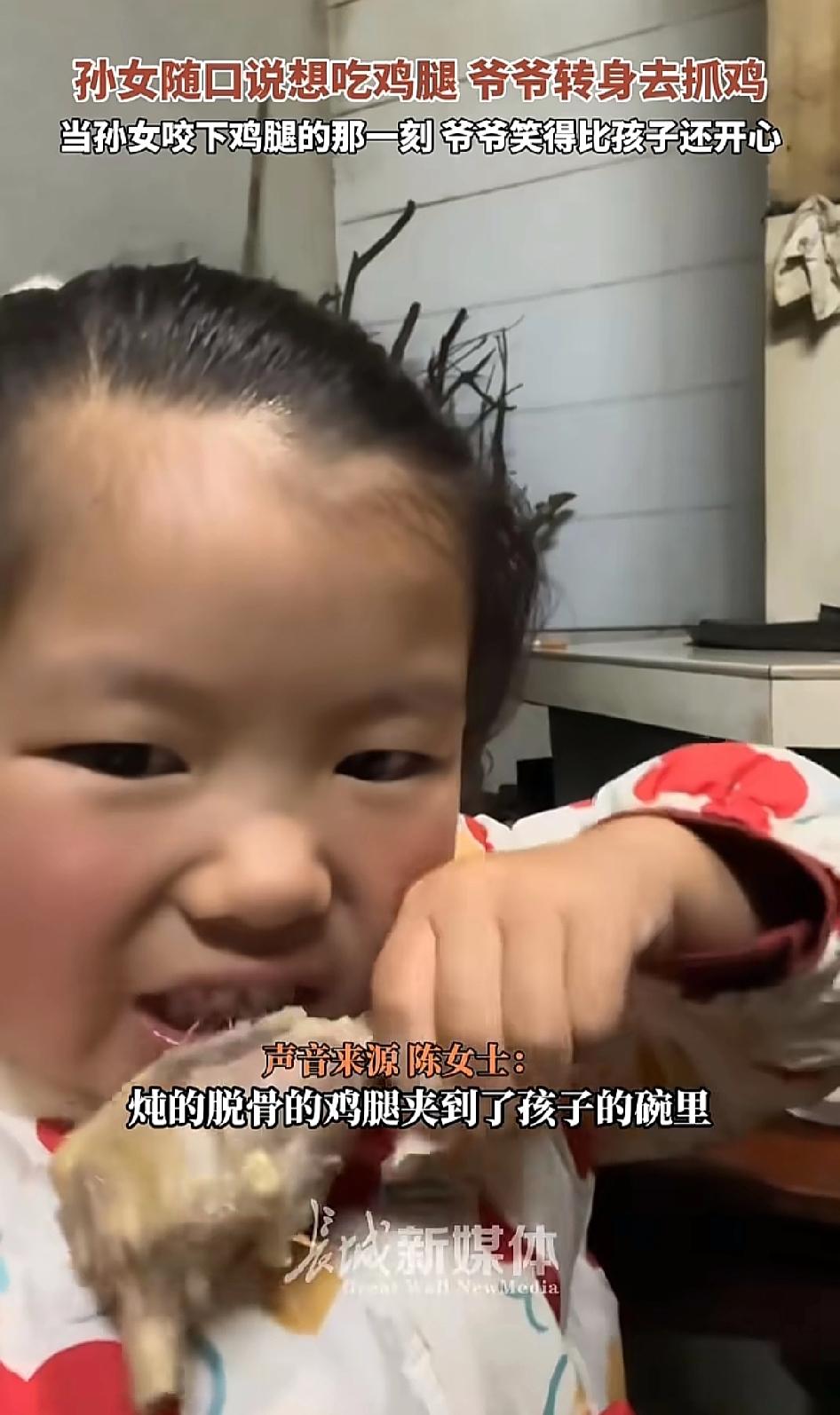 “太暖心了!”湖北恩施,孙女说想吃鸡腿,爷爷转身就去抓鸡。 不得不说这个孙女也太幸福了吧!孙女想吃鸡腿,爷爷立马就抓鸡,还亲自动手制作。孙女吃着美味鸡腿,是爷爷满满的爱。 网友热议,想当年六岁的时候在家后面大石头上摔了一跤,把下巴弄出血了,我爷爷一个小时把那一排差不多有十几个一百多公斤的石头都挖开了。 隔辈亲在此刻具象化了,看到这一幕,让很多网友想起了自己的爷爷奶奶 。小时候被他们疼爱着,让人看着真的是很暖心 。 晒图笔记大赛 (信息来源网络)