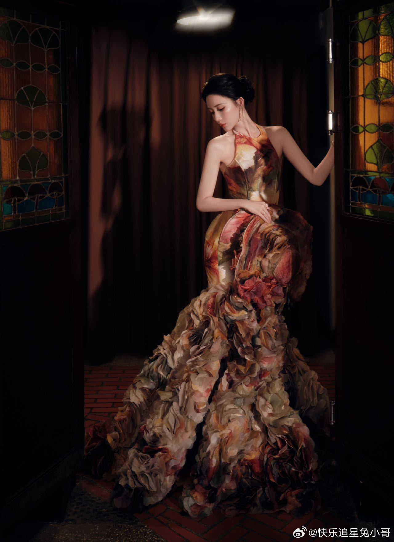 姐姐这身挂脖鱼尾裙简直把复古美学玩到极致!烛光摇曳的晚宴上,珍珠光泽随着步流动,分明是刚从莫奈画框里出走的睡莲仙子,连巴厘岛的夜风都为她定格!