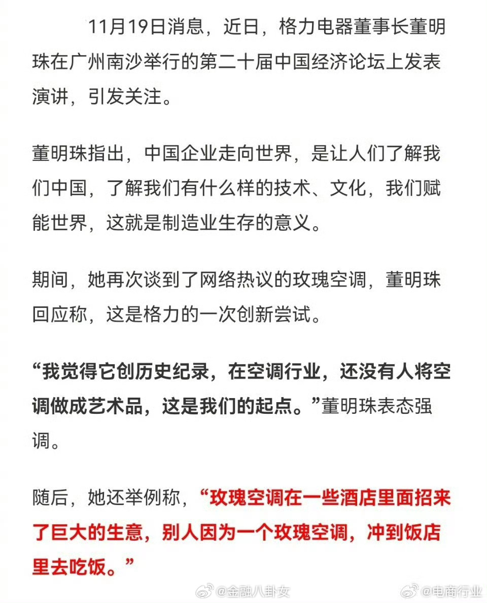 最高3.3万元格力玫瑰空调被嘲土,董明珠回应:它是艺术品,还能帮酒店招生意