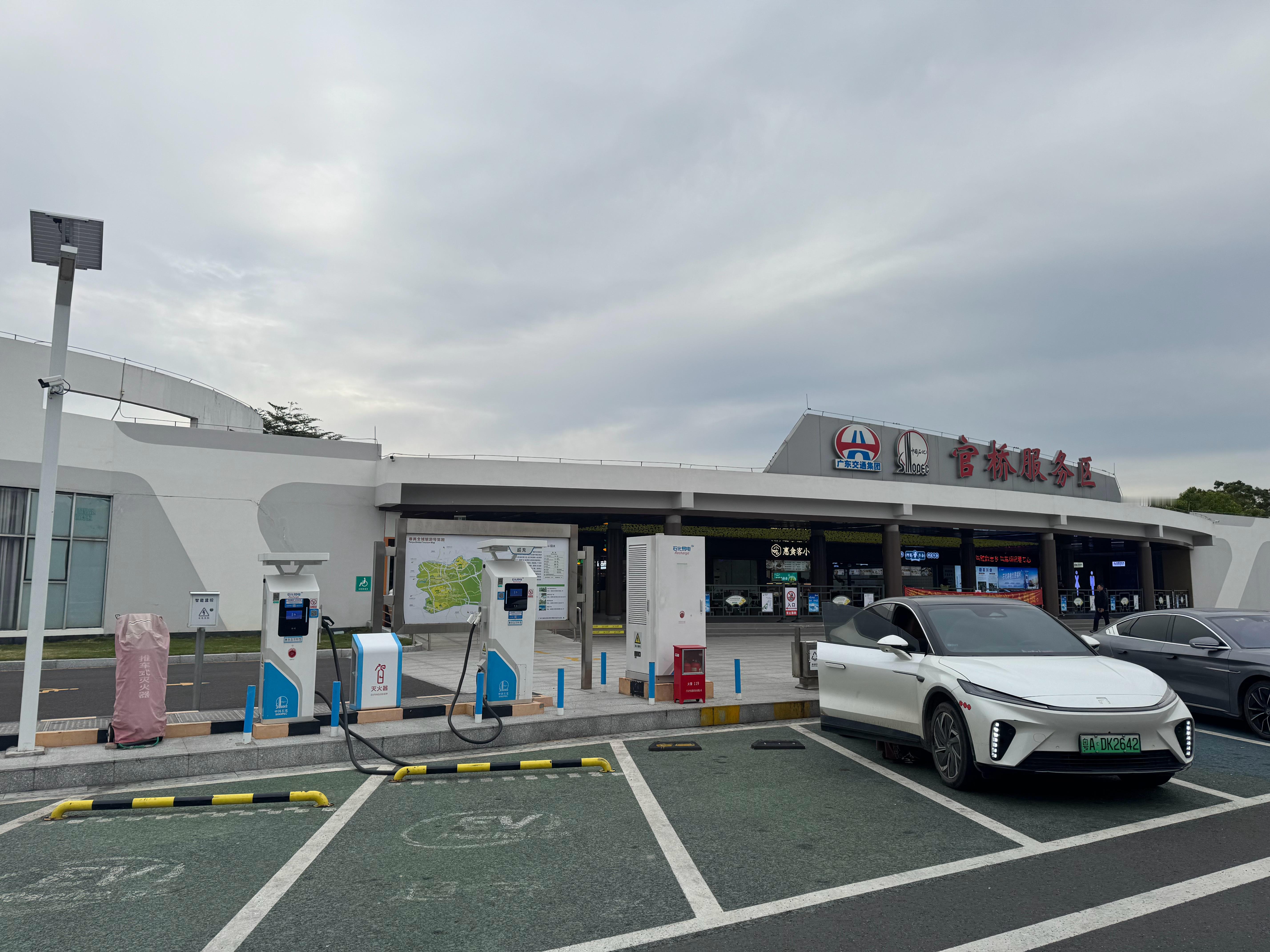 从深圳去广州路过一个服务区发现这充电桩离洗手间啥的真近啊有时候可能就差这几步路就