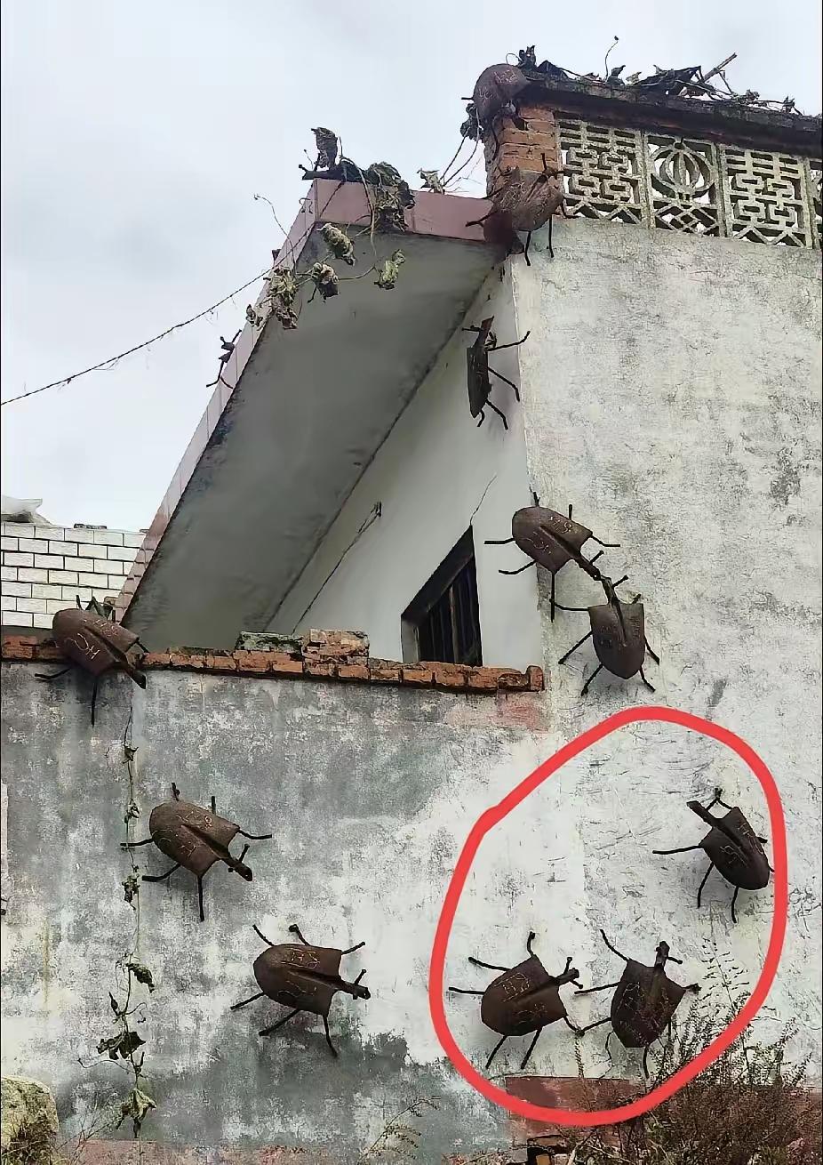 谁懂啊!路过隔壁村差点被门口“巨型臭屁虫”吓蹦! 定睛一看直接笑到跺脚,居然是用洋锹拼出来的创意摆件!不得不说农村人的脑洞真没上限,废弃农具都能玩出艺术感,这才是最接地气的生活美学啊~