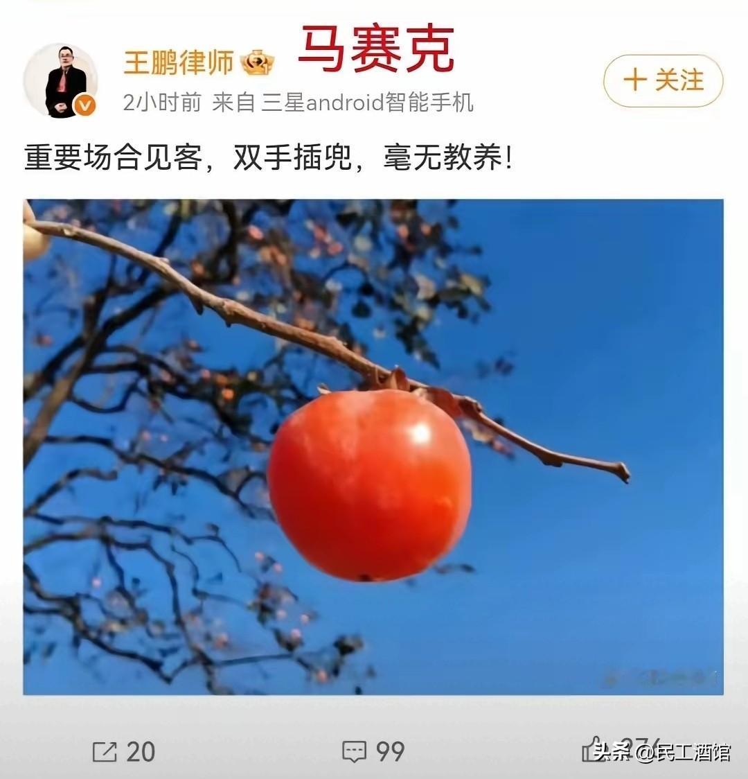 关于王鹏律师这句话,我必须得说几句。法律人最常说的是“以事实为依据”,而王律师的话首先就不尊重事实,他说“重要场合见客”,给人一种刘司长见客时双手插兜的感觉,然而,这是不符合事实的。 真正的事实是,网上传出的刘司长插兜的视频或照片,都不是刘司长会见日本代表的时候,而是会见结束后送客的时候,这二者有明显区别。 实际只要稍微动动脑也不可能说出王律师这种话,因为会见的时候,不是一句两句的寒暄,而是要谈些实际问题的,这不可能在墙角站着谈吧?那么刘司长一直插兜他自己不嫌不舒服吗?插兜只有站立行走时才舒服,坐着谈话时如果一直这样插兜,不是很奇怪吗,怎么可能呢? 而刘司长是在送客时行走的短暂时间内这样插兜,这就不是王律师所说的“重要场合”了,因为重要场合的会谈已经结束,现在是来到了一般场合。且此时插兜也不会有什么奇怪的感觉,还表达了一种不想握手(也即没谈妥,不想言和)之意,从这姿势我们也能猜测到日本代表虽然来了,但没说什么好话,等于是来了还不如不来,谈过之后关系更崩,刘司长才用这种姿势。 所以,刘司长插兜既不是在见客(是送客)时,也不是在重要场合(是一般场合),王律师的话不符合事实,这不是法律人该犯的错误。 王律师还提到“毫无教养”,这是典型的书呆子看世界——呆眼呆见。因为第一前面说了,这不是“重要场合见客”,第二前面其实也说了,这是事出有因,是没谈好,且日方挑事早先。如果刘司长无缘无故见谁都这样大咧咧地插着兜,摆个臭架子,才可以说是毫无教养,可此时不是这种情况,王律师却不顾实际情况而死死地咬着那点社交礼仪说事儿,太教条了,说白了就是书呆子。 当然,任何人性格、脾气、习惯不同,假如我是刘司长,那么即便谈崩了,我也不会插兜,这是我见不熟悉的人的习惯,我只有在熟人面前或者完全与我没有任何关系的陌生人面前才会插兜,因此在我个人看来,刘司长这个动作肯定算不上太有礼貌的动作。 只是,我的文明礼貌只要求我自己,我不能说刘司长此时举止看似不太礼貌就一定是错的,更不能说他毫无教养,因为这也可能是他出于某种斗争需求考虑而主动采取的动作,我们不在他那个位置上,也没经历过跟日方代表的会谈,更不知道日方代表在会谈时说过什么过分的话,什么都不知道的情况下就去拿一个文明礼仪的教条去框人家的动作,这本身就是不符合文明礼仪的。 如果有人还不懂这一点的话,我再多说一例,比如日常生活中我们都知道对人骂脏话是不文明不礼貌的,可是如果一个日本人站在我面前说东北三省是他们的,我难道不能骂一句“X你祖Z”?我还非要跟他文明礼貌面带微笑地讨论到底是谁的? 如果王律师对民族大义没感觉,这个例子不好理解,那就再举个王律师容易理解的。假如王律师跟自己老婆吵架了,这段时间他老婆都拒绝跟他亲热,这时候跟王律师家早就干过架的隔壁老李拿着喇叭喊:婚内强制那啥也是犯法的,奉劝王律师知法莫犯法,如果你强制那啥你老婆,我必参与干涉,你老婆有事就是我有事!此声明我老李坚决不收回! 那么请问,王律师此时就只有必须文明礼貌面带微笑地与老李交流这一种选择吗?王律师不能此时仍不能对老李做一些不文明不礼貌的动作吗?如果做了,就是王律师没有教养吗?