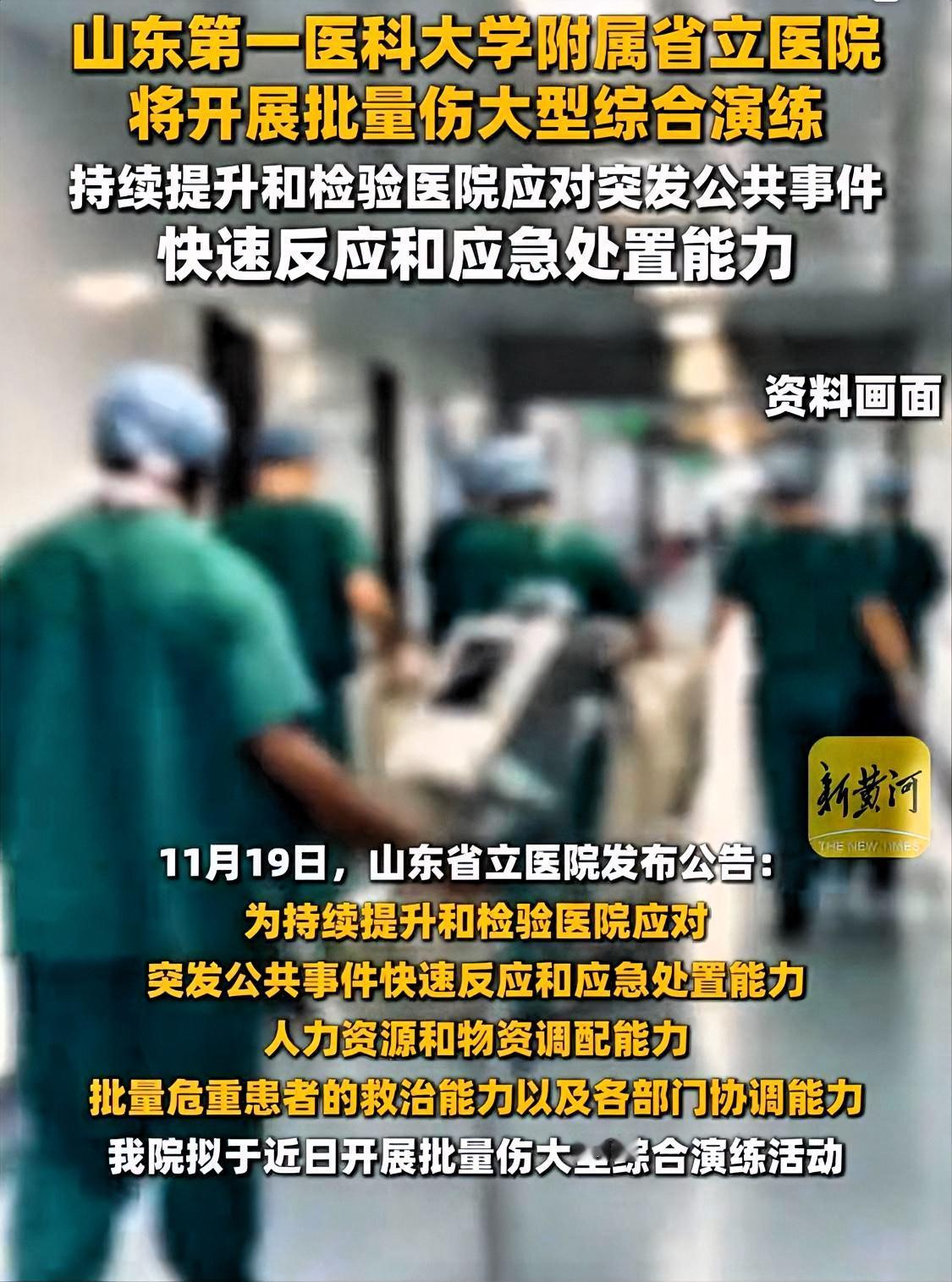 它(们)还不配! 今日,山东第一医科大学附属省立医院开展将开展批量伤大型综合演练活动的公告一经发布,引发不少网友联想到战备。 说实话,无论对付小日子还是湾湾的台独分子,都还不至于让我们提前搞大型医疗演练。因为,它们不配! 如同军报发文那样,以如今我们的实力,即使真发生战争,那战场也只会发生在它们领土。 所以,山东这家医院搞演练就是一次计划内的常规演练,是医院应急管理和能力建设的标准动作。国内外不少医院都会定期举办类似活动,只不过这次常规演练发生在中日关系敏感时刻罢了。