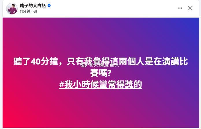 今天下午,巅峰对决,对岸蓝白俩大话筒开始竞赛,你吹一个我吹一个,图2老蓝女钱子也表示没听懂俩人在说啥 , , ,