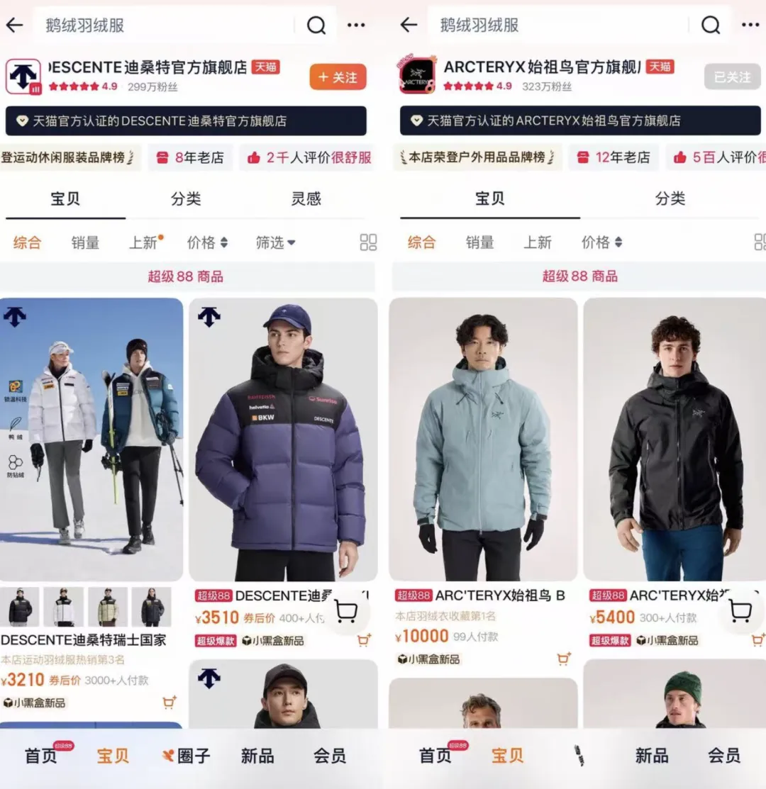 始祖鸟、猛犸象、迪桑特、北面等品牌的核心产品价格也能轻松越过五千元大关,万元级的羽绒服、羽绒夹克也不在少数。