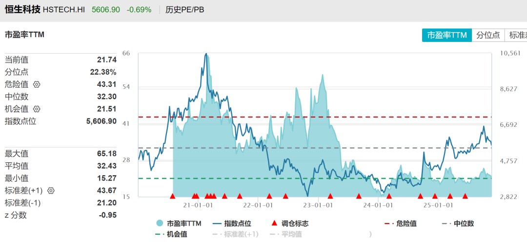 恒生科技指数最新市盈率为21.74倍,处于上市以来22.38%的位置,算是非常低估了。