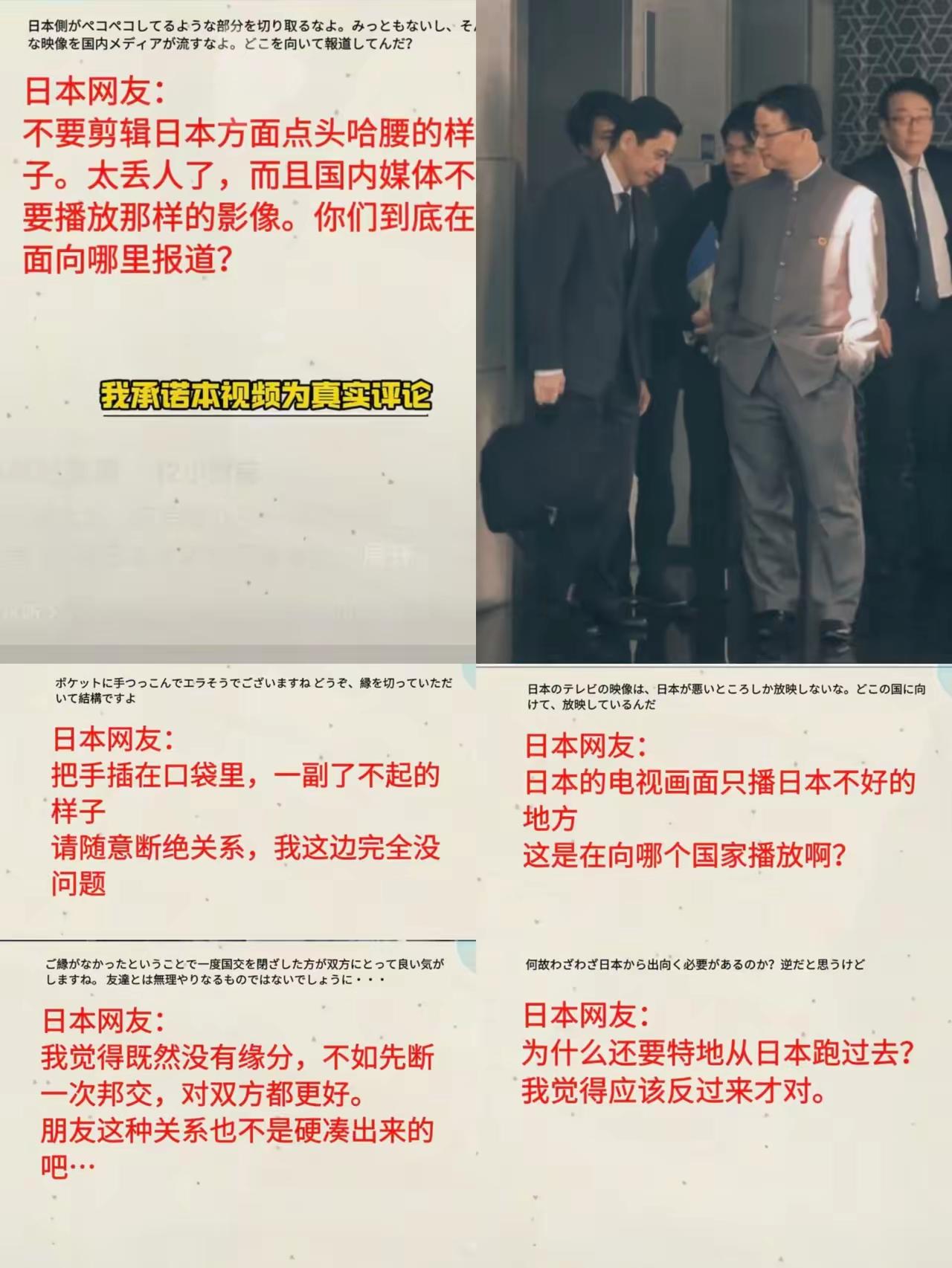 快讯!快讯! 11月19日,日本朝日电视台报道称,日本高官到中国磋商脸面丢尽,面对刘劲松“中式服装+霸气揣兜”,金井正彰服服帖帖,点头哈腰像做错事的孩子。该台分析称,中方罕见举动意在直白传达“14亿中国人很愤怒”,台湾问题绝不让步的强硬态度。部分网友调侃日本外交官“习惯性谦逊”,认为中方此举可能带有“表演性质”。中国网友提醒需警惕日本“表面忍让、背后暗藏动作”的传统外交风格 。 ‌ 讲几句:刘劲松类似于“中山装”的中国风着装,承载着民族自尊和自豪感,“霸气插兜”彰显实力和自信。刘劲松表演也罢,非表演也罢,足以证明谈判有十足的底气和实力,正如央视“玉渊潭天”说日本也“不撒泡尿照照自己”。金井正彰“习惯性谦逊”也罢,非谦逊也罢,日本“台海出兵”错误言论,确实是该挨揍找打。今日之中国非昔日之国力,到了扬眉吐气的时候了。