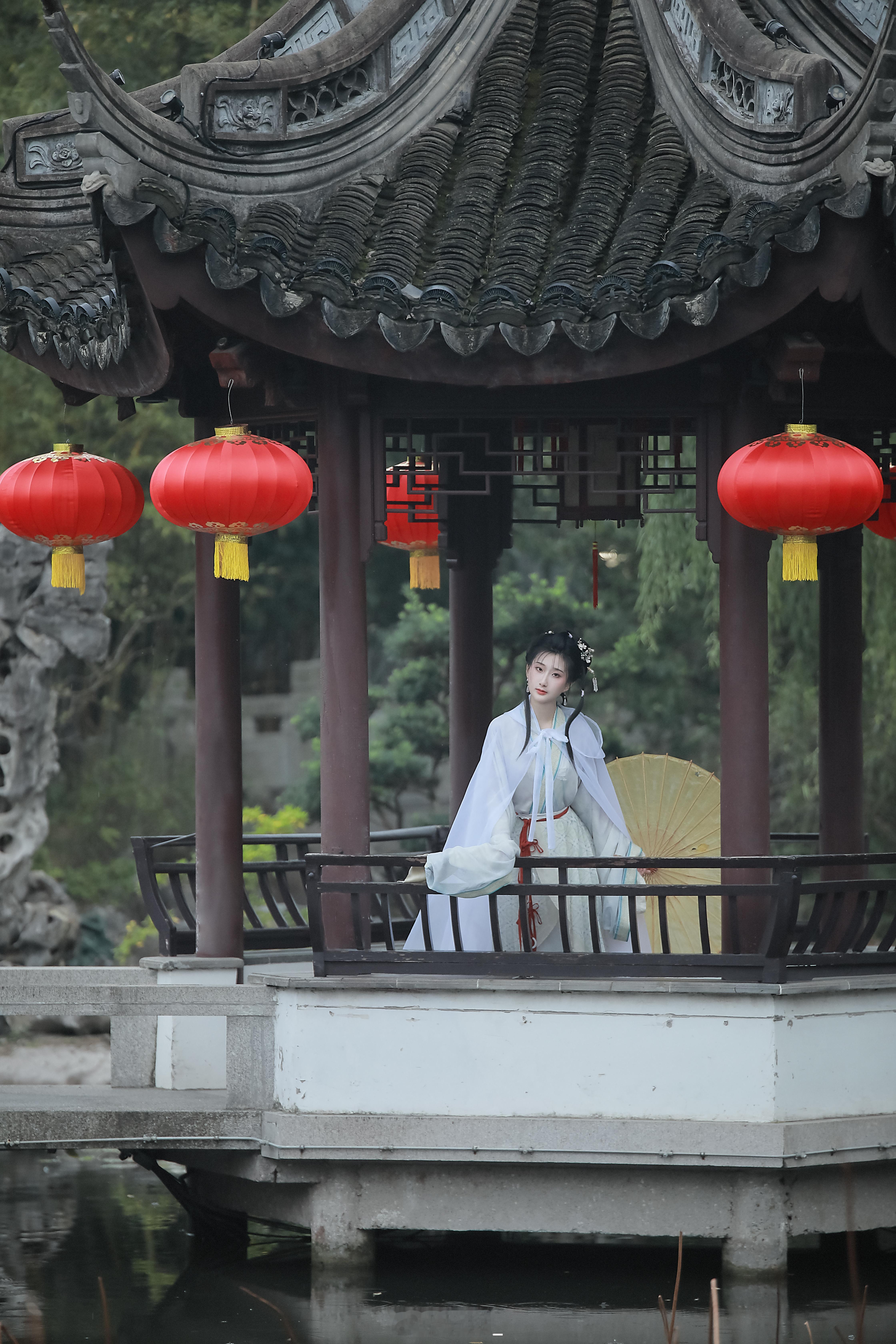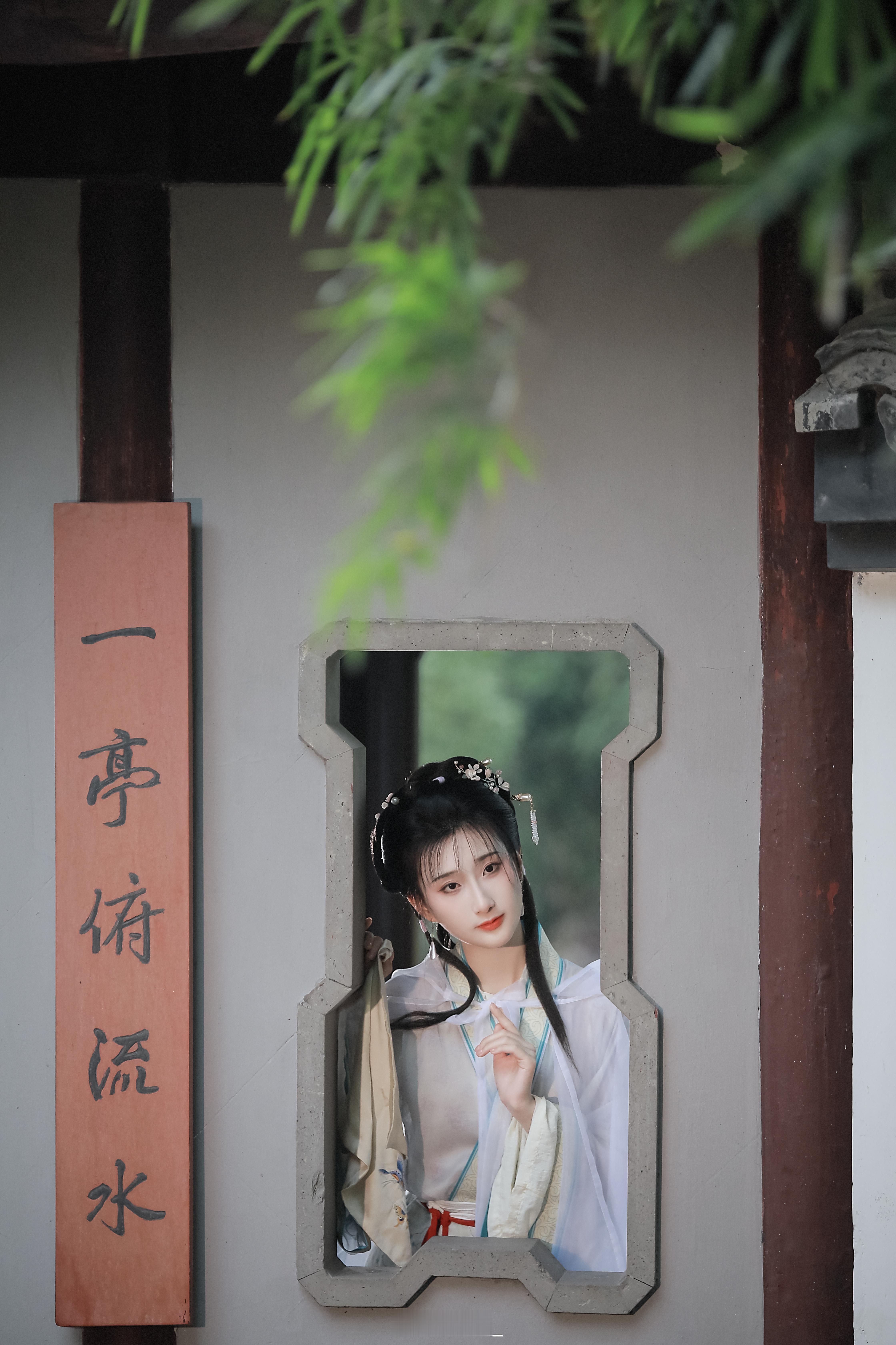 薄汗轻衣透,试衫怜袖短。 晚来风荷举,是否也知愁? 上海约拍古风写真汉服