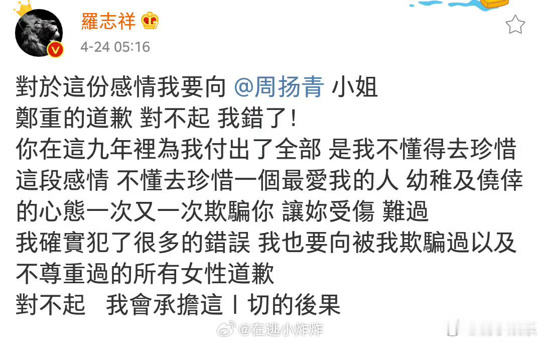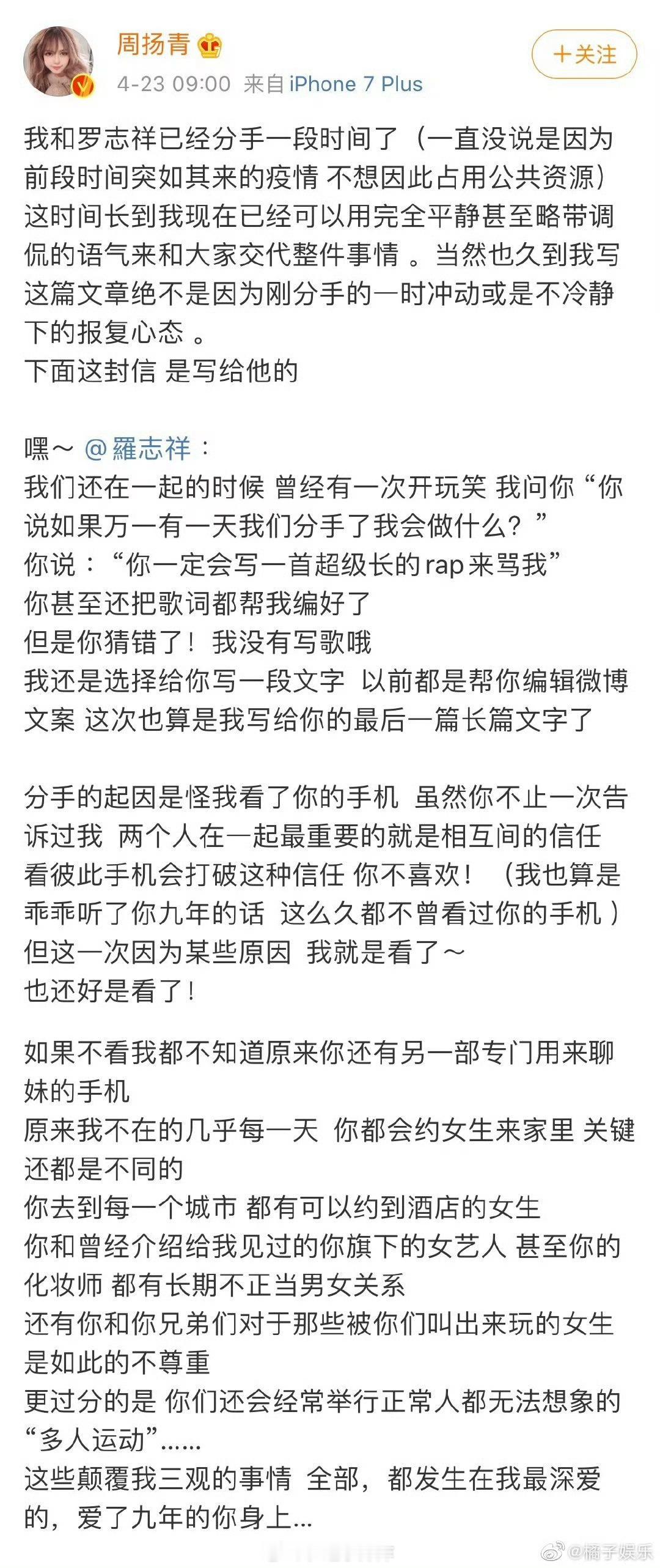 ber…让他玩上岁月史书了?背叛谈了九年的女友,每个城市都有p友,把女孩约到家里,跟身边女性有染,多人运动…这些他可是当众道歉过承认过啊是真觉得周扬青放不下脸,不会追着杀是么…