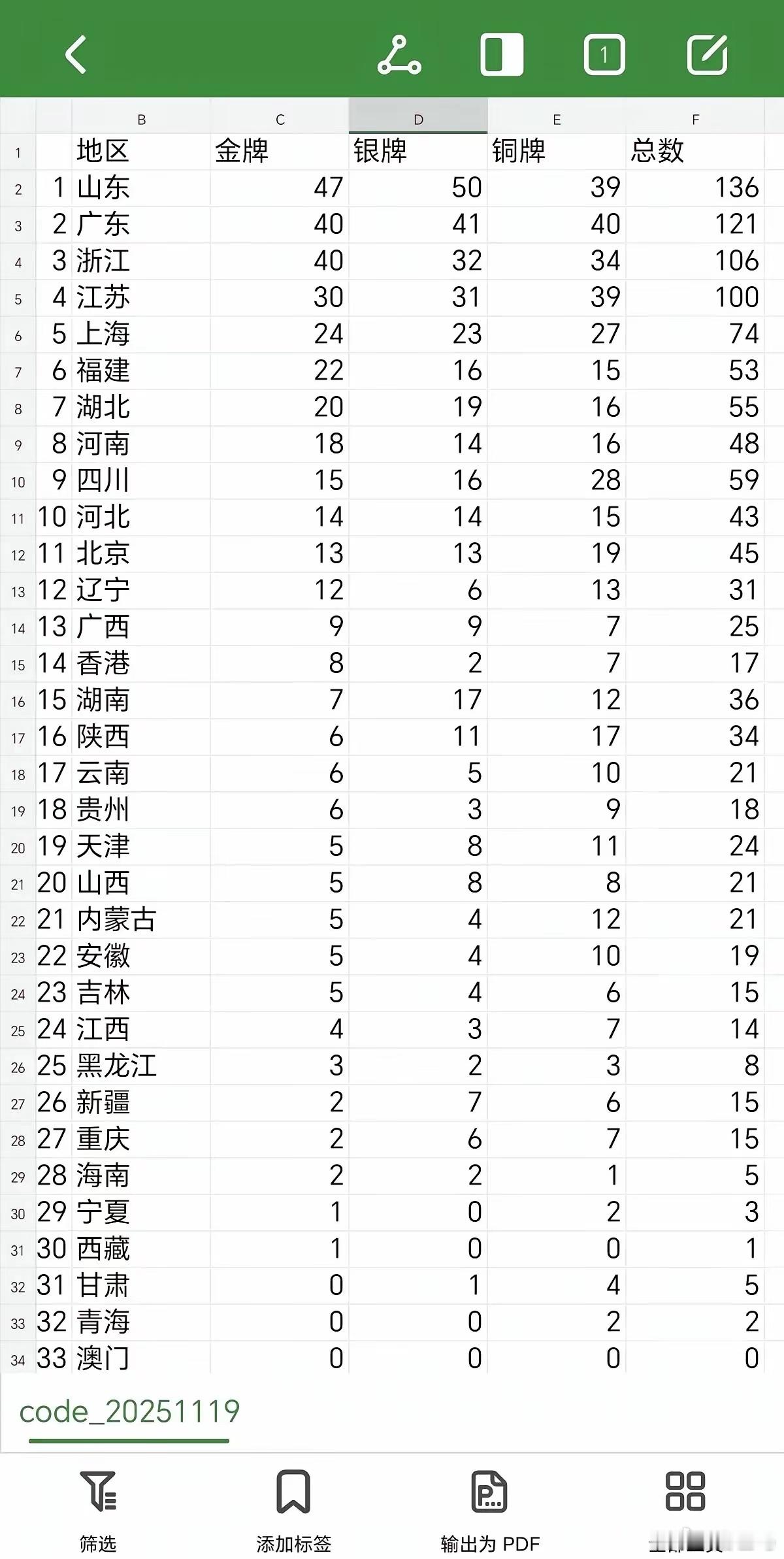 第十五届全运会,截止11.19日18:00,广西共获得九金九银七铜共奖牌数为25枚,居第十三位,各项指标均超过上届全运会,热烈祝贺大广西!明天最后一天,刘德助兄弟贝侬和广西女子水球队有望拿下奖牌,希望再拿下一金。不知道明天还有没有男女4*100接力赛,如果有,广西也有希望获奖牌!