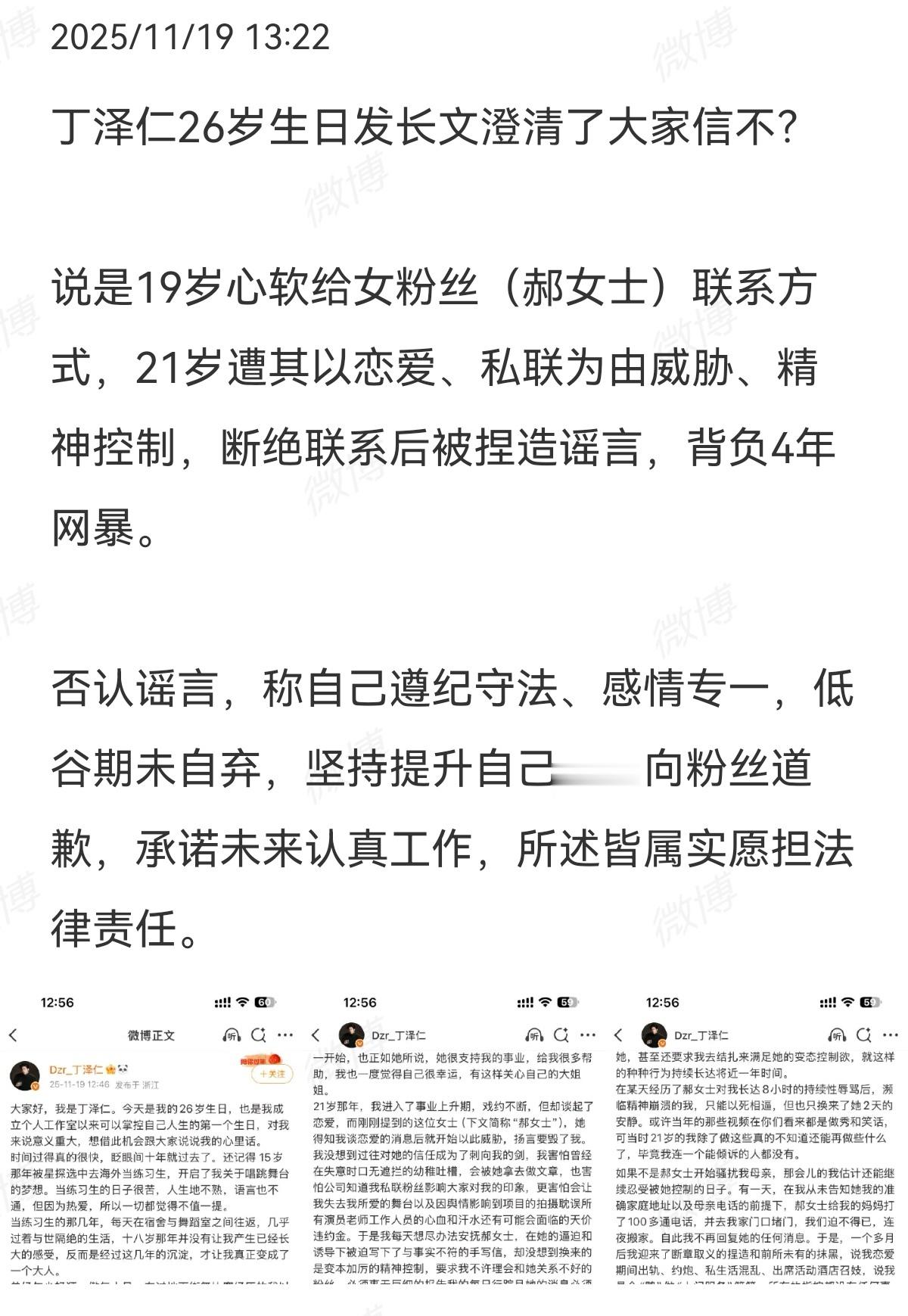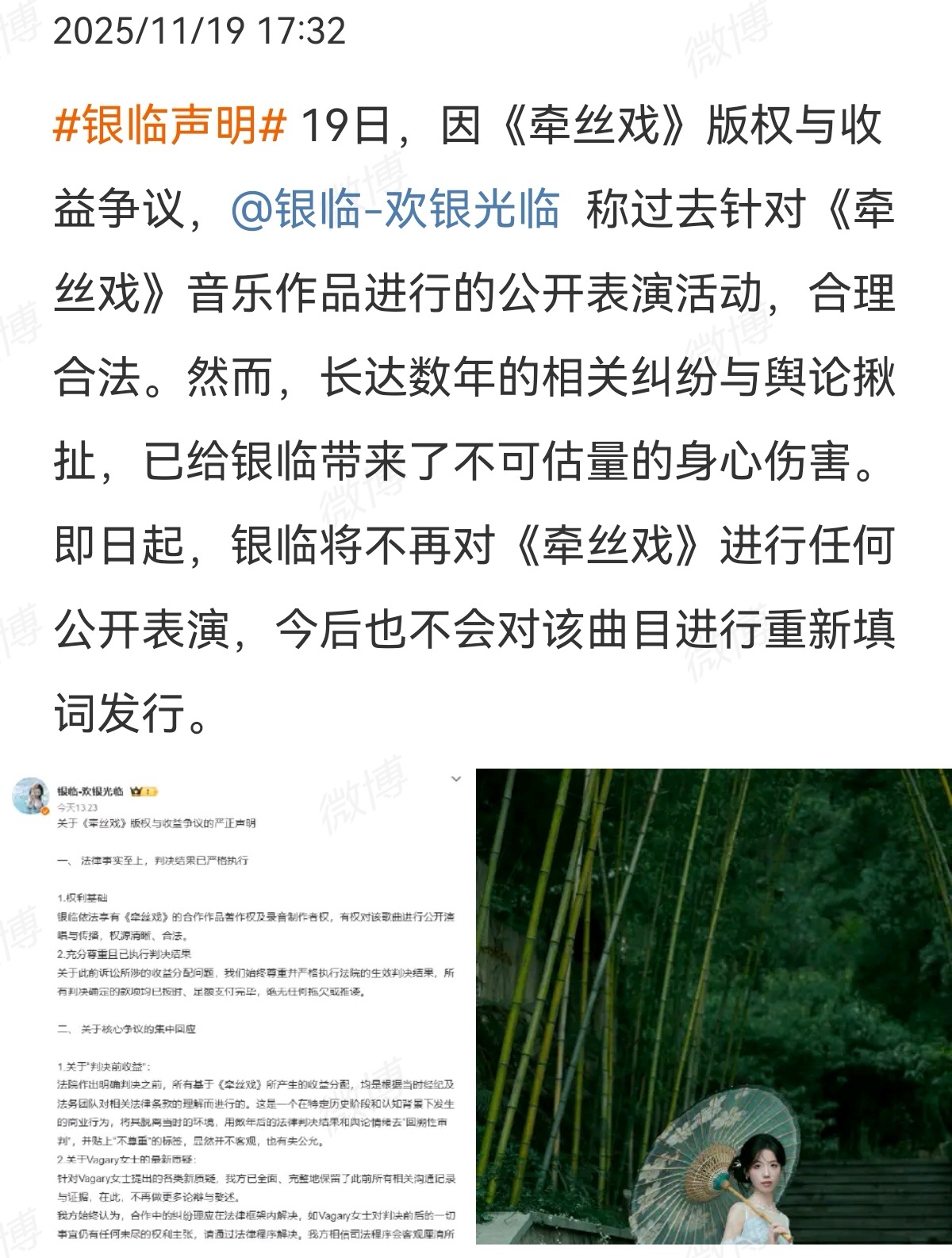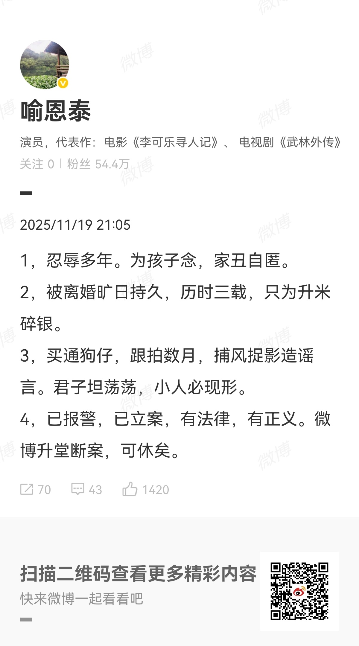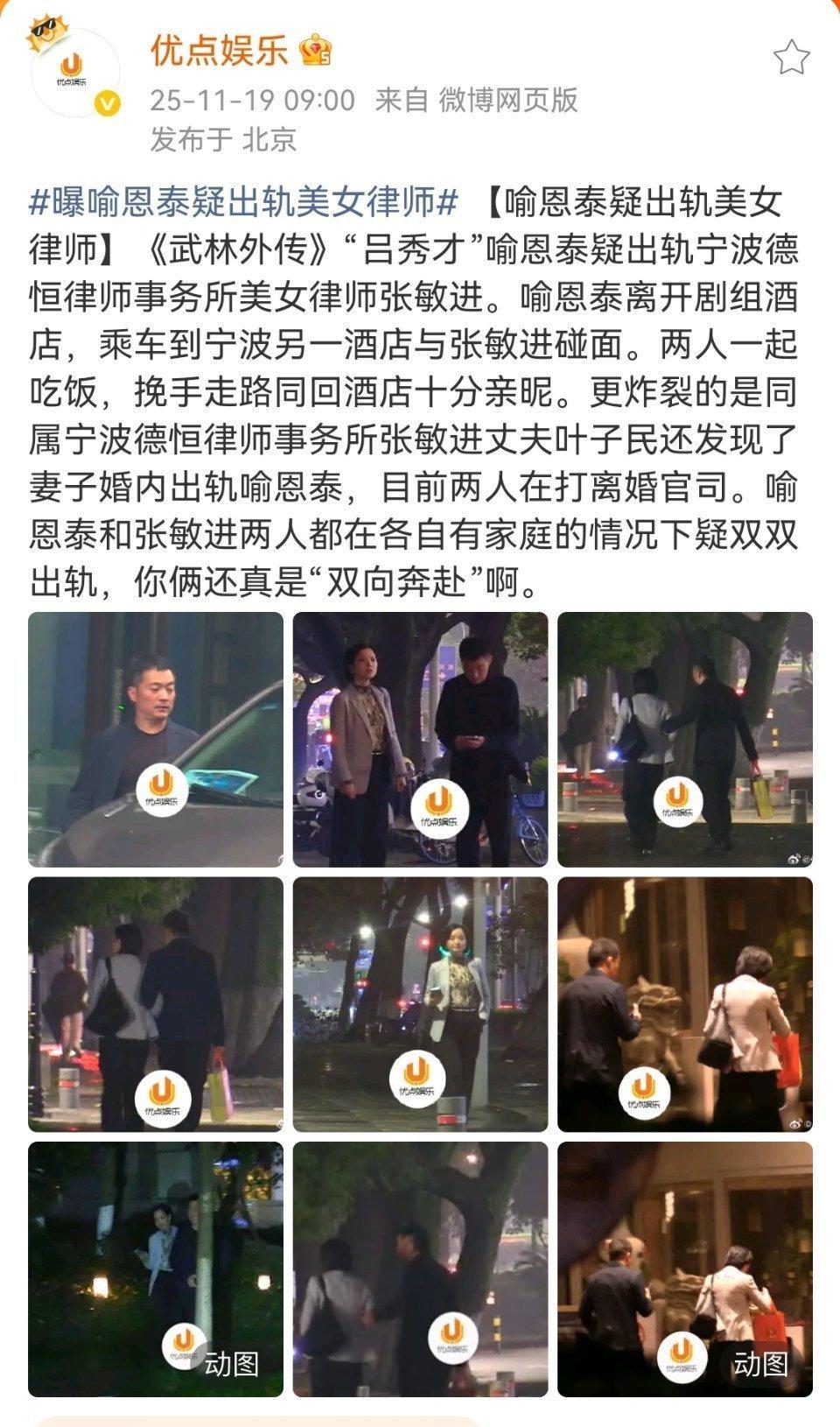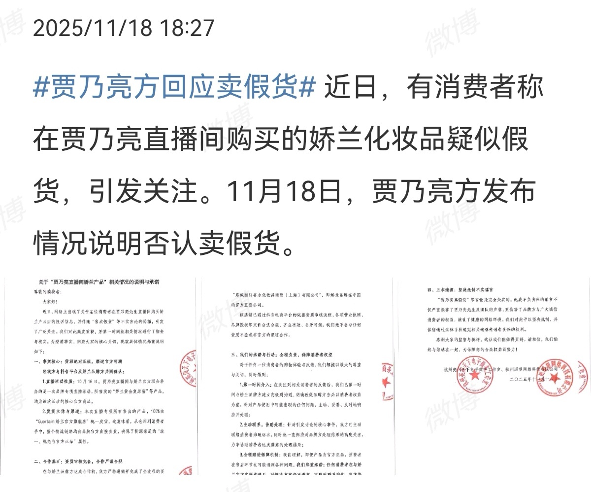 2025-11-19总结①中国版时尚杂志发了声明强调cosmo版权2031年到期 图1②罗志祥就时间管理大师一词道歉 图2③有网友爆料在贾乃亮直播间买到了假货,贾发声明,否认卖假,已经联系商家处理 图3④丁泽仁26岁生日发长文否认唯一姐事件 图4⑤银临声明将不再公开表演《牵丝戏》图5⑥八卦媒体曝出喻恩泰与律师张敏进一起吃饭,挽手回酒店,互动亲密。而张敏进丈夫发现了妻子婚内出轨,目前两人在打离婚官司。 图6有网友自称是史林子出轨对象前妻,称史林子与前夫付殷正洋先生婚内出轨是事实 图7喻恩泰回应最近的婚变传闻,家丑、妻子要钱、买狗仔跟拍造谣打舆论战、已经报警、已经立案。 图8⑦搜狐电影切错号,吐槽胡歌新电影三滴血扑得悄无声息 图9⑧对接辟谣宋威龙签约虎鲸文娱。 图10 ⑨席绢宣布封笔 图11⑩陈飞宇暂不接告白,粉丝应援退款 图12撕❶菜鸟与大鱼,徐滨与谢可寅互动惹争议,徐滨道歉 图13❷碧血蝉,番位,该剧官微开通后,初期宣传侧重侯明昊与徐振轩,营造“双男主”氛围 图14张文昕团队迅速反应,联络各大社交账号修改番位表述,强调其作为女主的二番地位 图15❸猫发财停更,因统计剧集周边销售额的计算方式引发粉丝争议,水龙吟周边销售额超过赴山海 图1618号