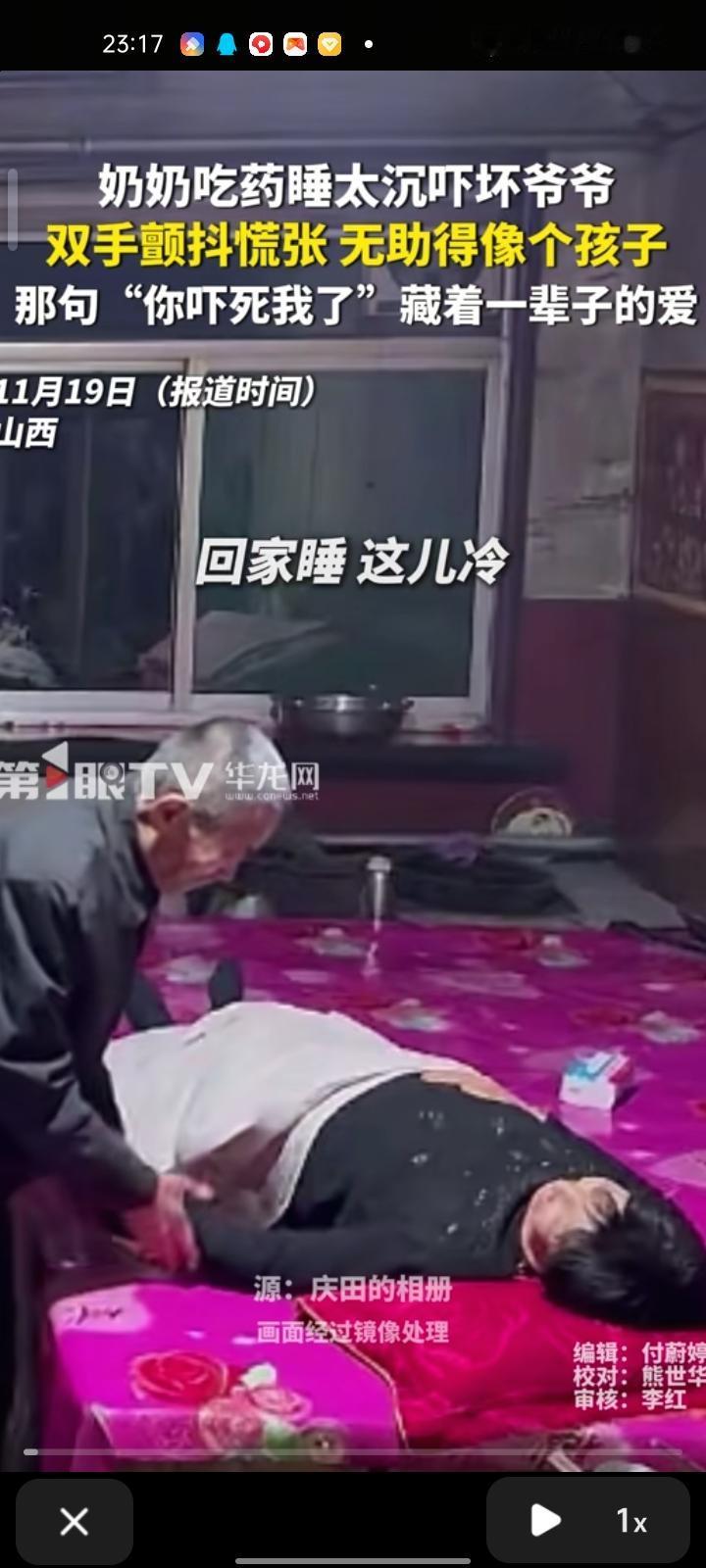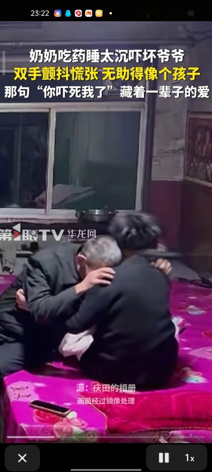 11月9日,晋中市灵石县。奶奶吃药睡太沉,爷爷试图摇醒她,双手颤抖慌张,无助地像个孩子。奶奶醒来后,爷爷抱着她哭着说“你吓死我了”。 孙女孙女士介绍,爷爷奶奶的感情很好,连上厕所都要一起陪伴着。奶奶年纪大了,有时候会失眠,那天正好吃了药,可能有助眠效果,爷爷叫她都没叫醒,老人最害怕的就是这样