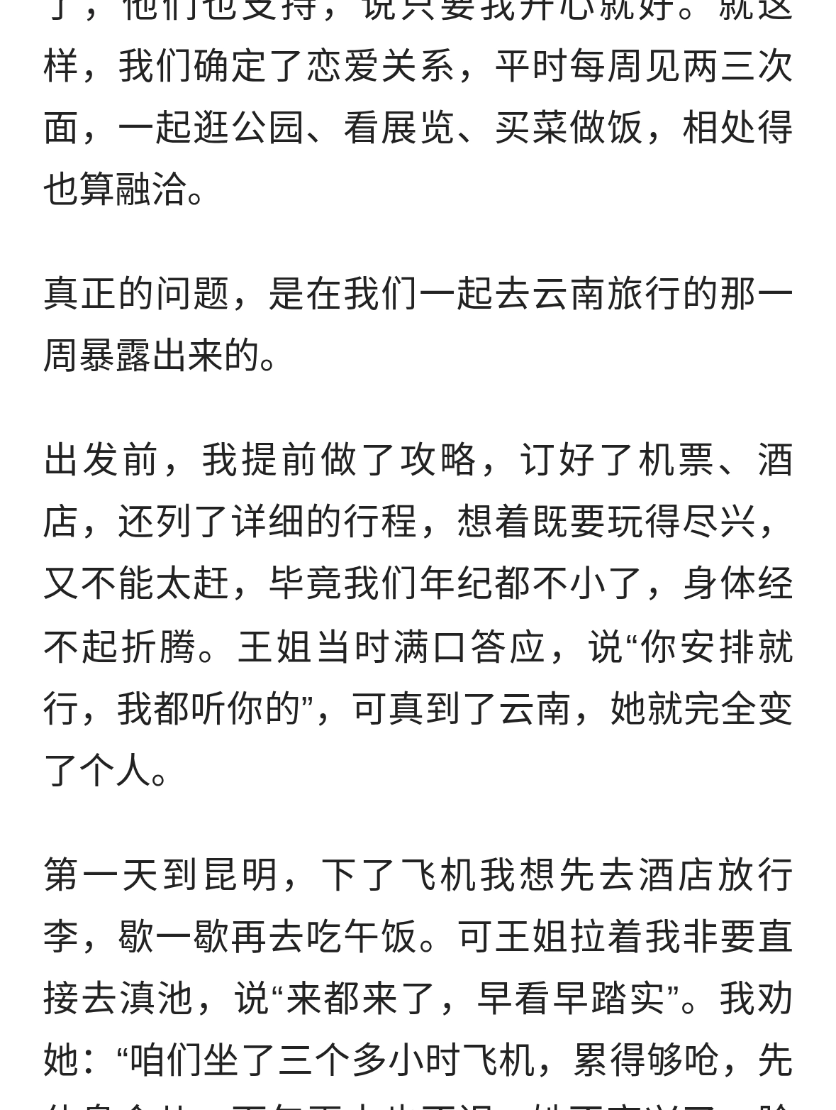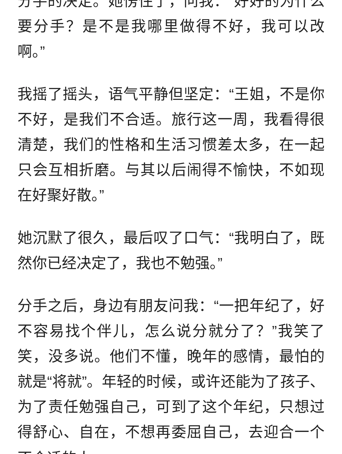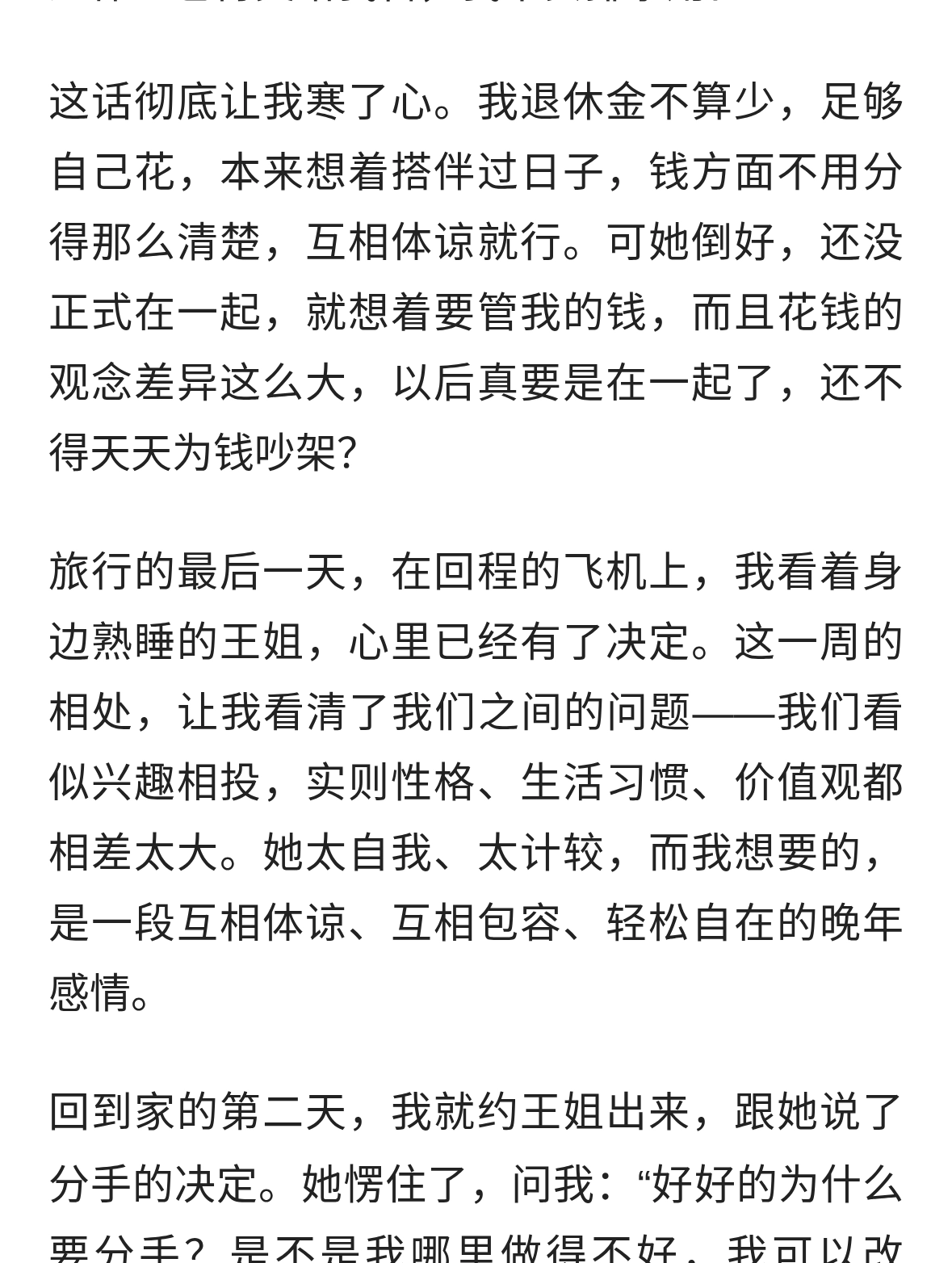 我63岁,和53岁女性旅行一周,回来我就提分手,实在难受…