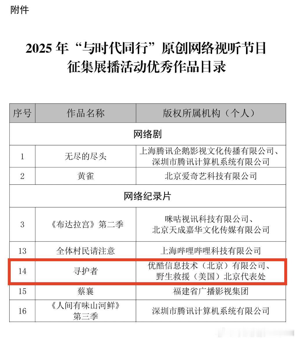 王一博野生救援纪录片纪录片《寻护者》再添新荣誉!! 《寻护者》成功入选2025年“与时代同行”原创网络视听节目——优秀作品🏆(由国家广播电视总局发起👏🏻)。 王一博作品,部部精品,脚踏实地,每一步都不白走,“部部”有回响,“步步”都精彩![赞]