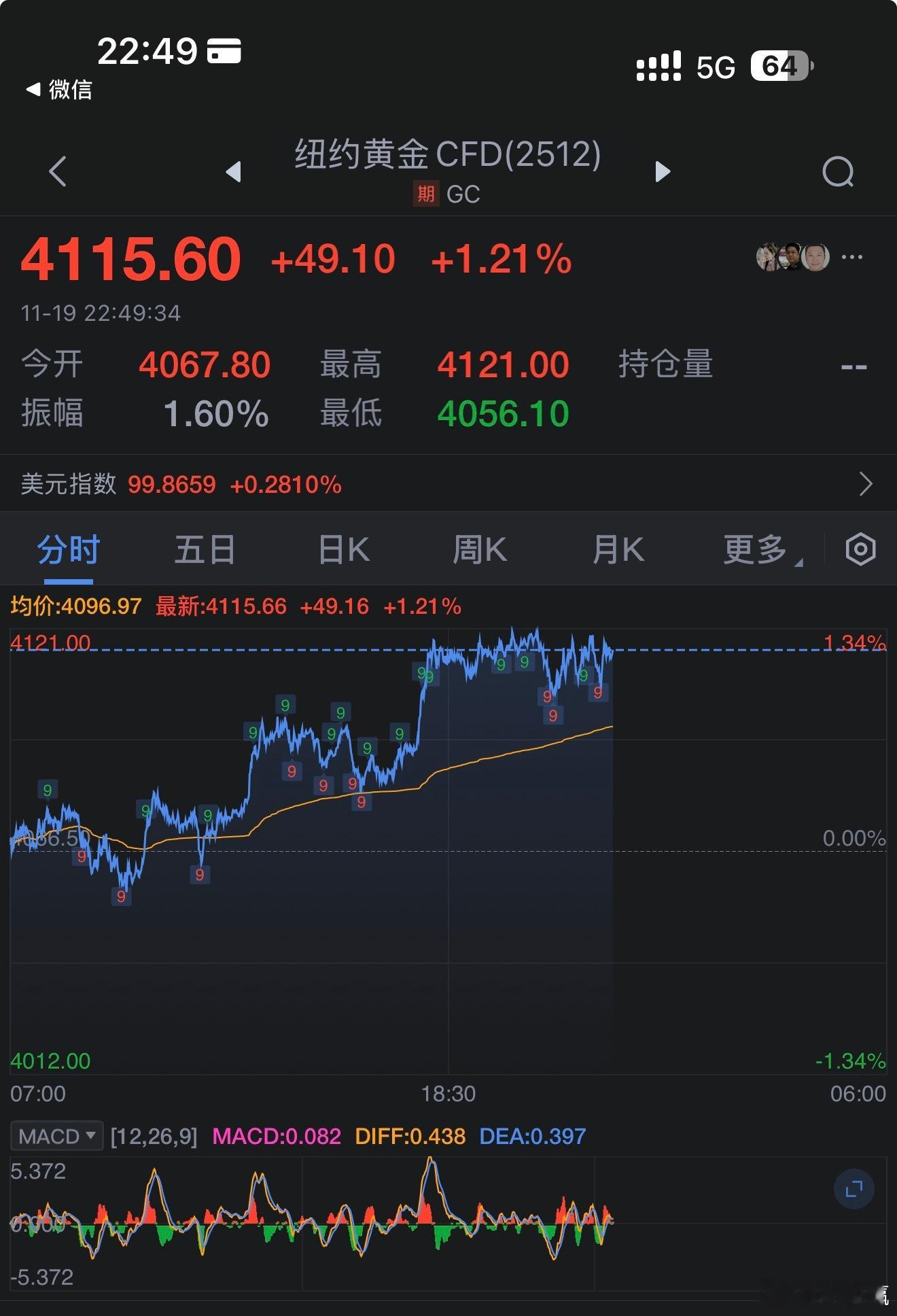 一度跌至3997美元后,现货黄金再度快速拉升!北京时间11月19日晚间,现货黄金