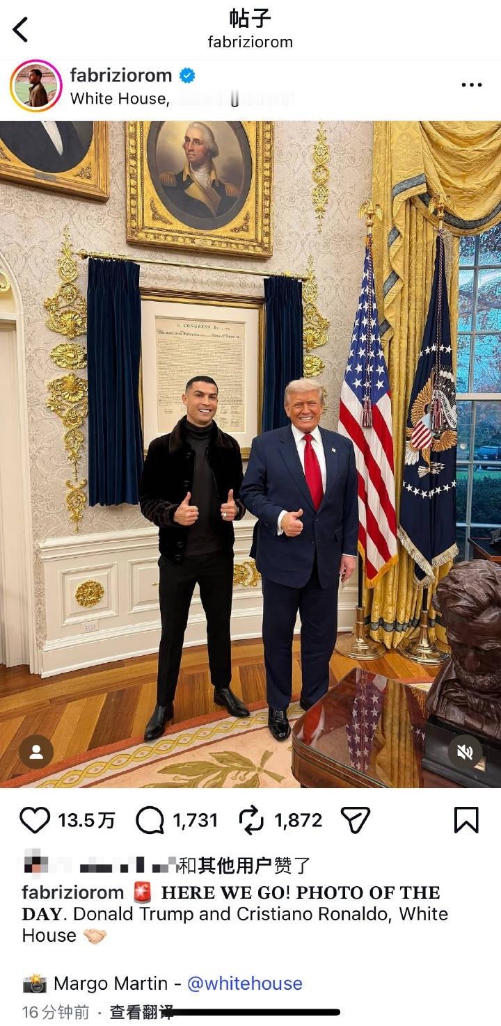 白宫官网居然弄了一个专栏放C罗的照片😨