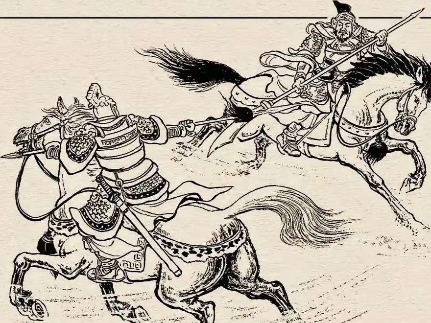 曹洪赶到,截住马超,大战四五十回合,刀法散乱,气力不支。