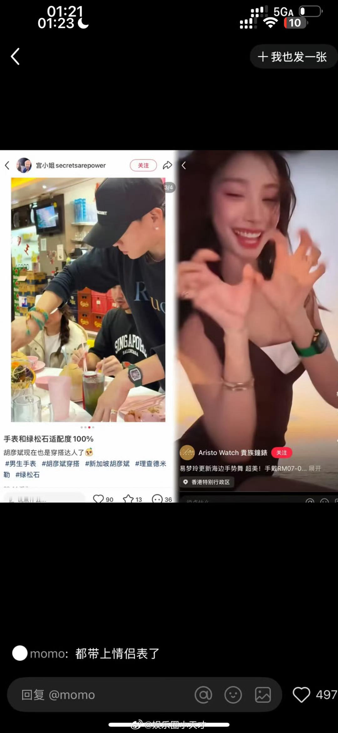 大半夜刷到好多人说胡彦斌和易梦玲在一起了……有人说在马尔代夫偶遇他俩了,也有人在张一山的话剧现场看到他俩一起的,还有人看到他俩戴同款手表了……(我是不是大半夜熬出幻觉了